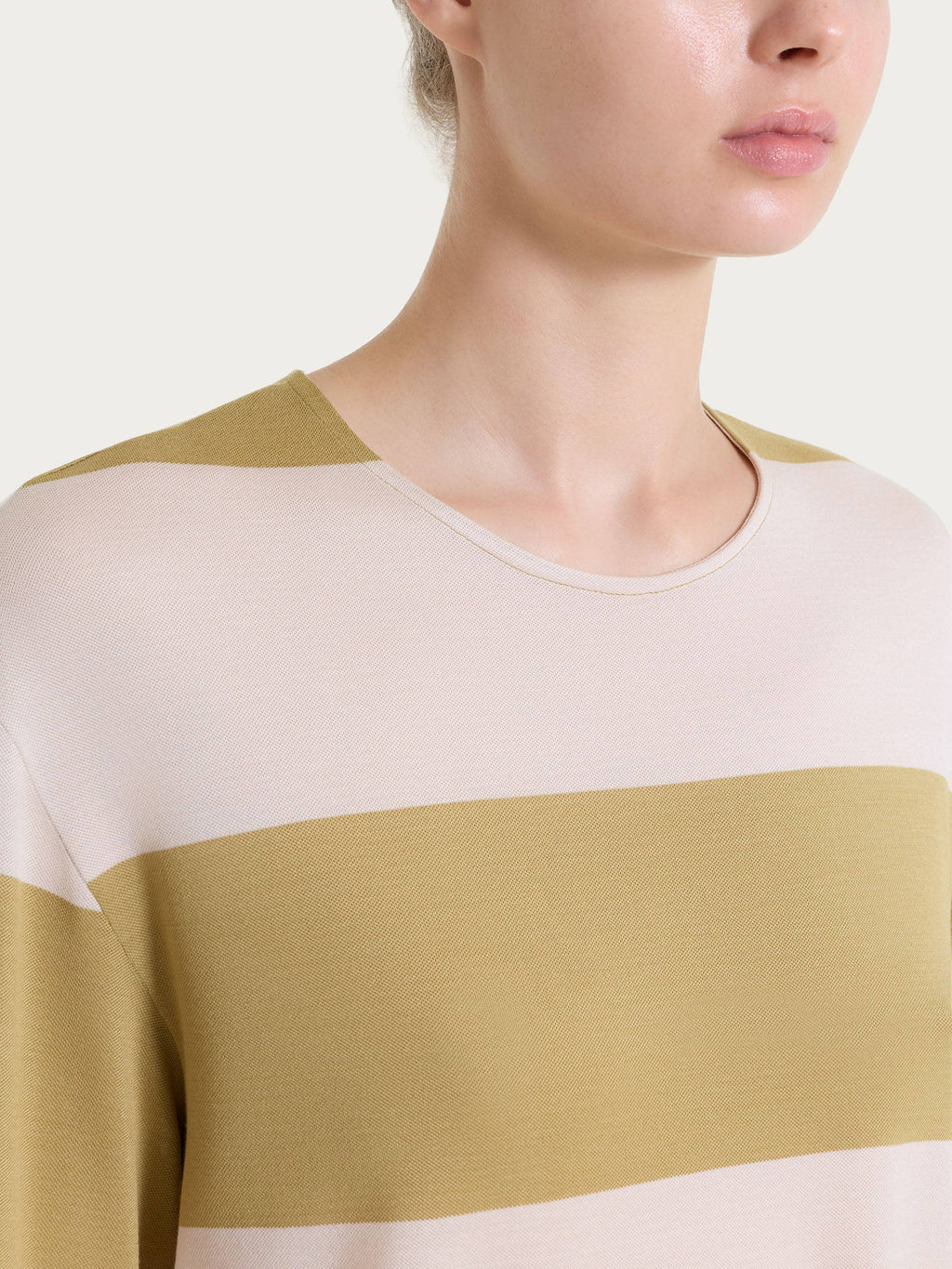 Maglietta girocollo e con macro righe in Summer Light - Fant. Khaki