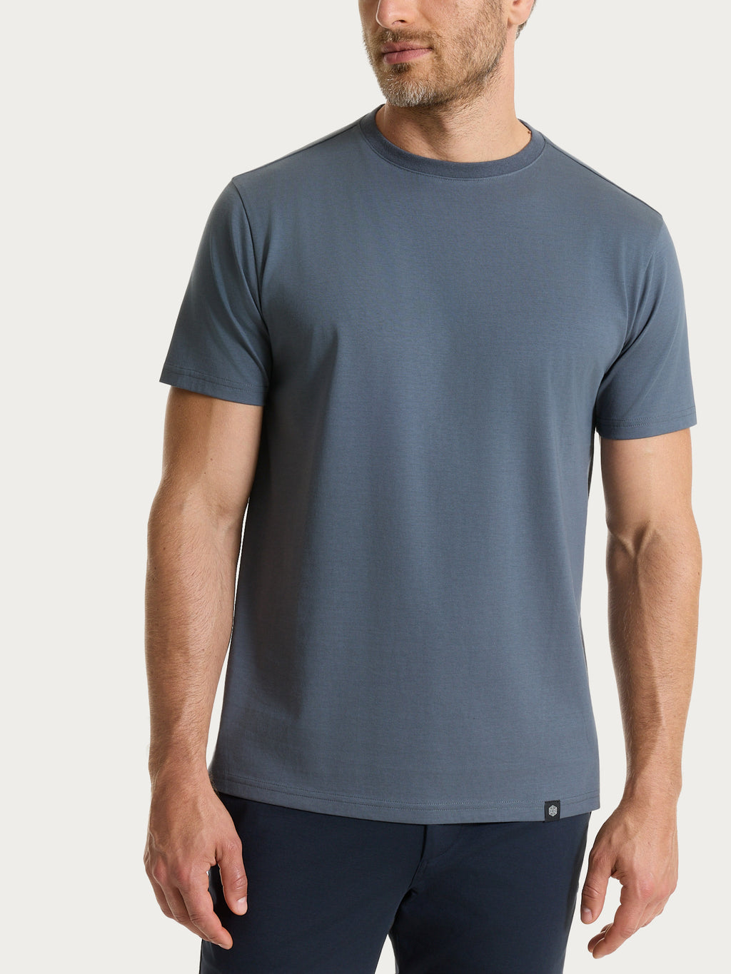 Maglietta girocollo da uomo tinta unita in jersey double mercerized di puro cotone.