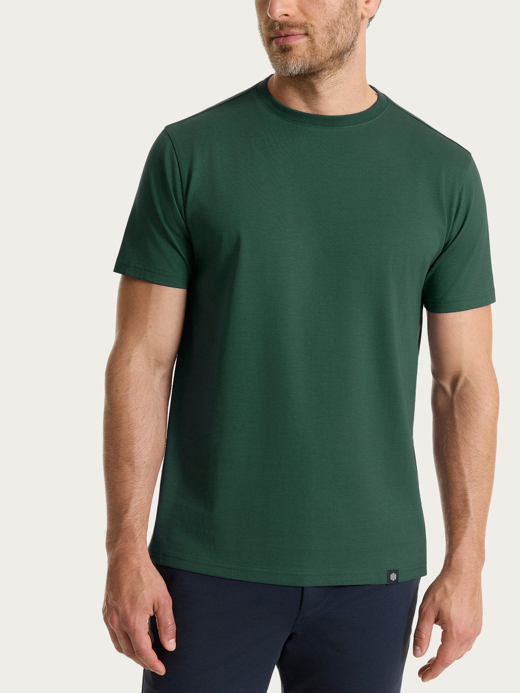 Maglietta girocollo da uomo tinta unita in jersey double mercerized di puro cotone.
