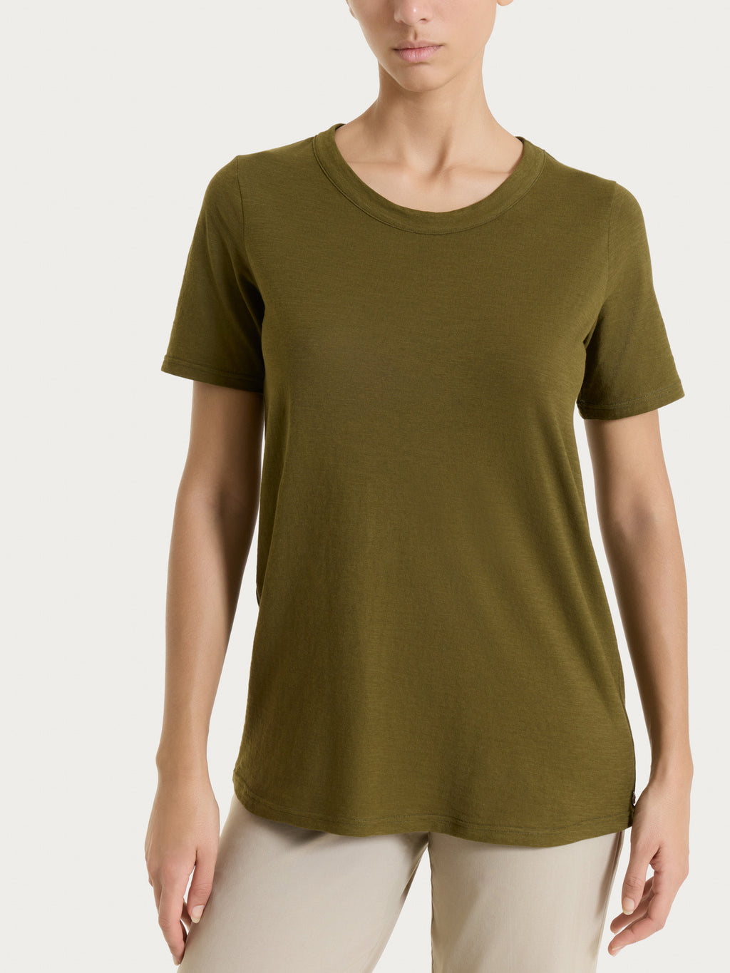 T-shirt girocollo da donna con la manica corta.Questo capo è classico e senza tempo, noto per la semplicità e versatilità.Realizzato in freschissimo slub jersey, un tessuto realizzato con filato fi...