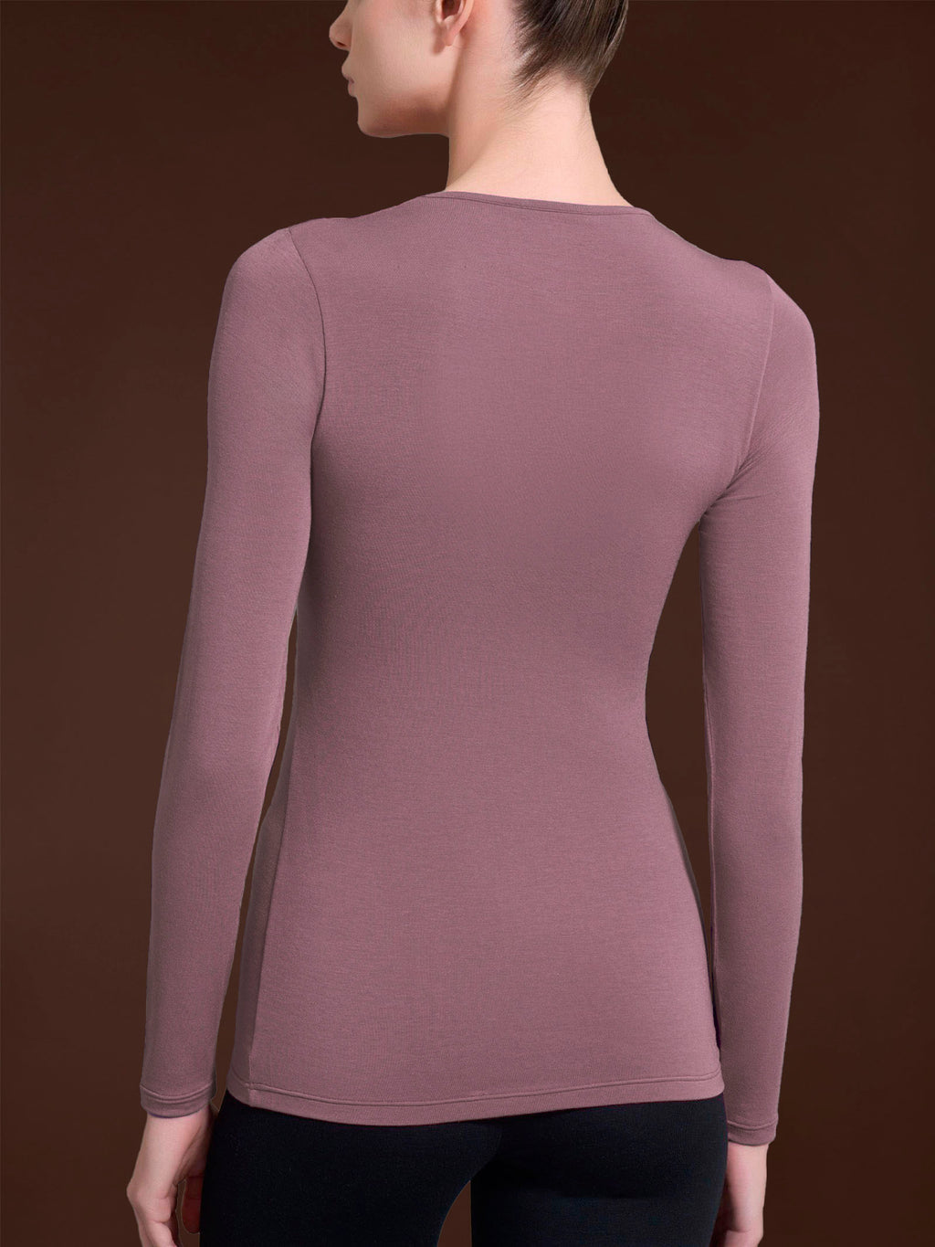 Maglia girocollo da donna con manica lunga in soffice e caldo cotone Thermo Cotton.Con vestibilità skinny, questo capo rimane aderente e si presta perfe...