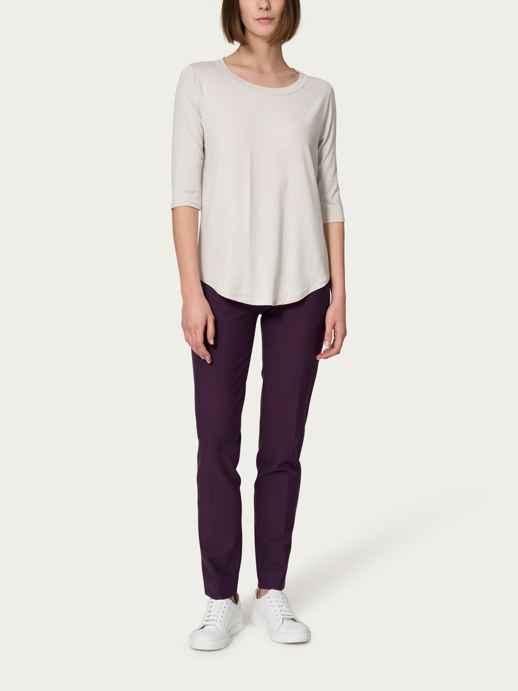 Maglietta girocollo da donna con manica 3/4.
