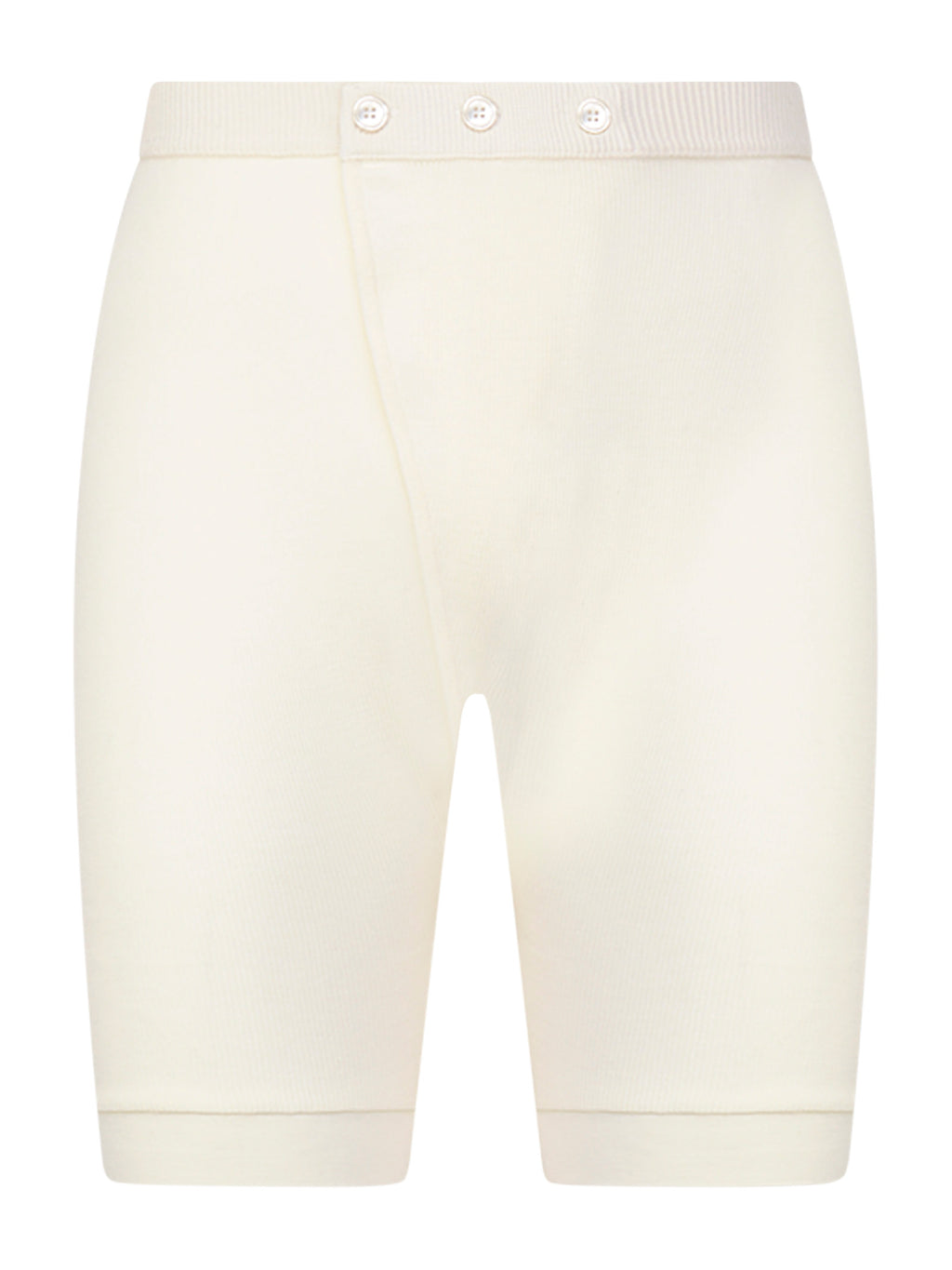 Calzamaglia corta in costina pesante di pura lana merino extrafine, con chiusura in vita tramite bottoni per una vestibilità pratica e confortevole.