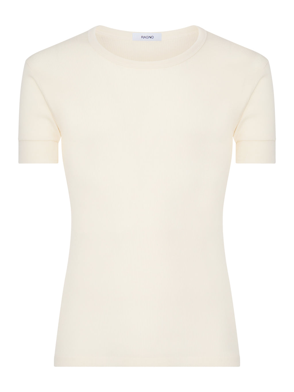 Maglietta girocollo a manica corta in costina di pura lana merino pesante.