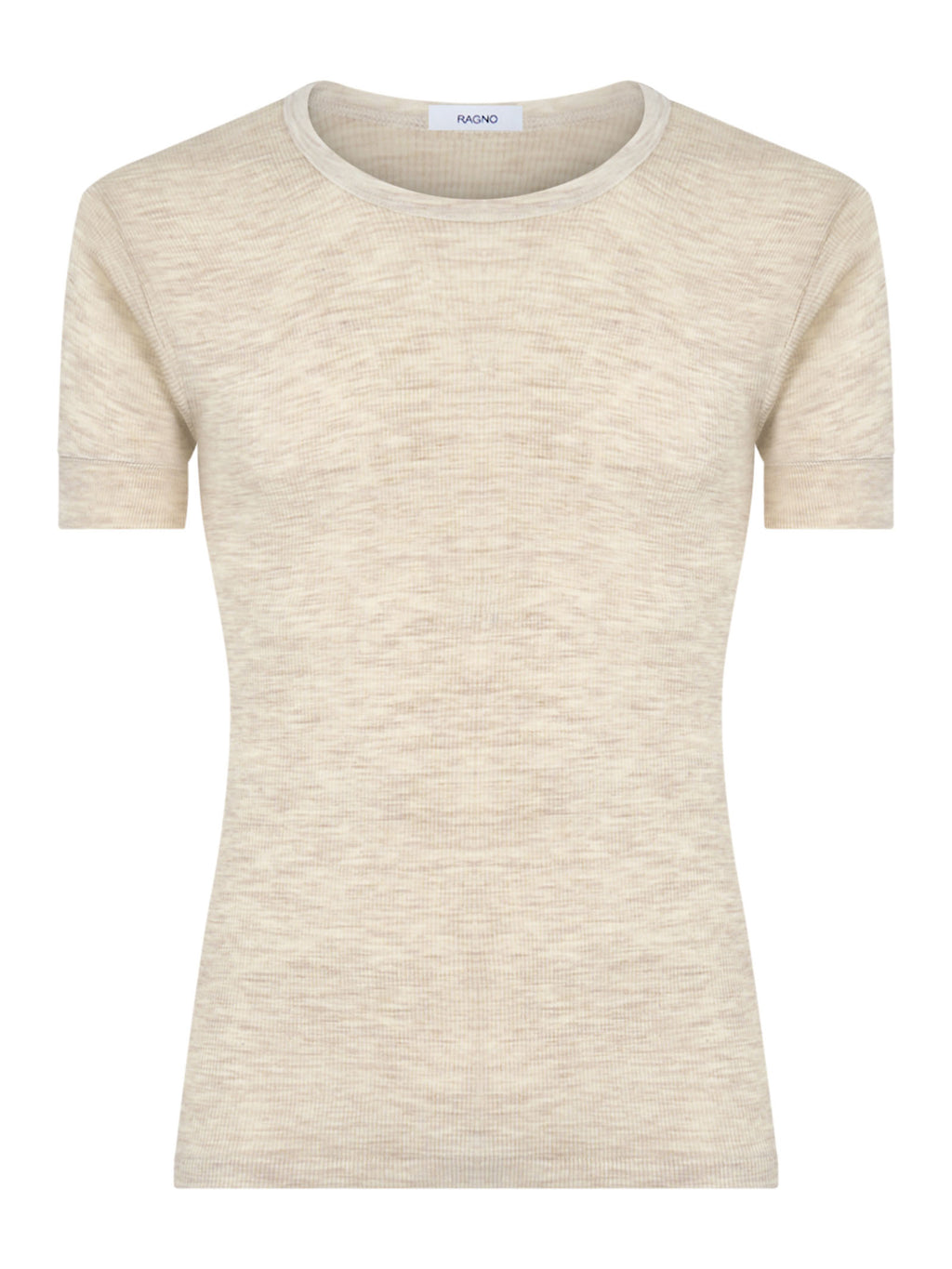 Maglietta girocollo a manica corta in costina di pura lana merino pesante.
