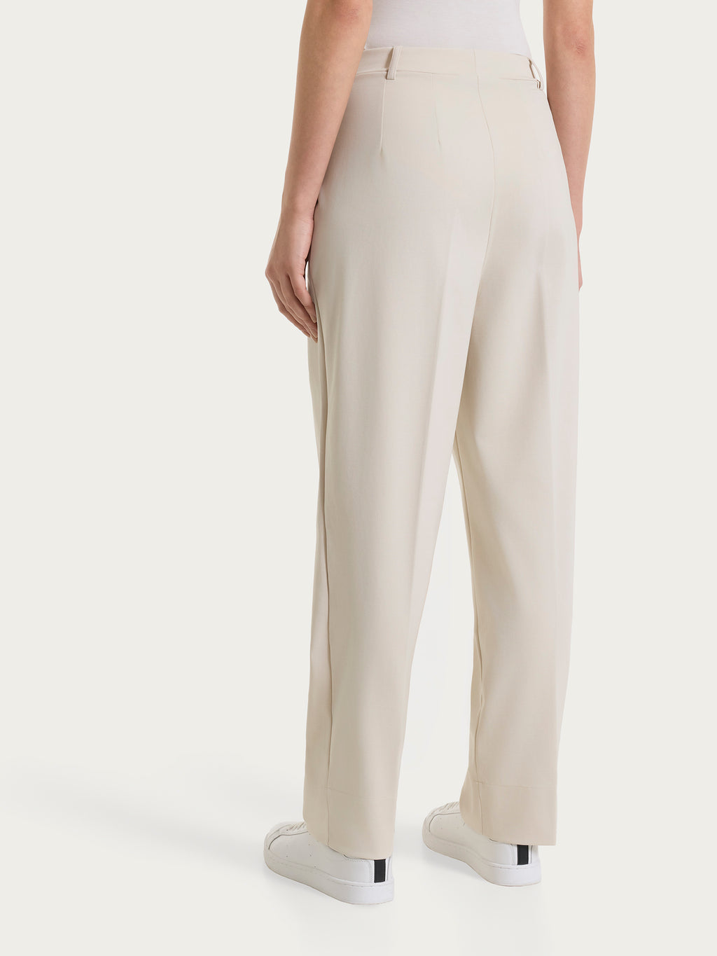 Pantalone a carota da donna con vestibilità tapered, la gamba leggermente ampia si stringe verso la caviglia con lunghezza alla caviglia cropped.