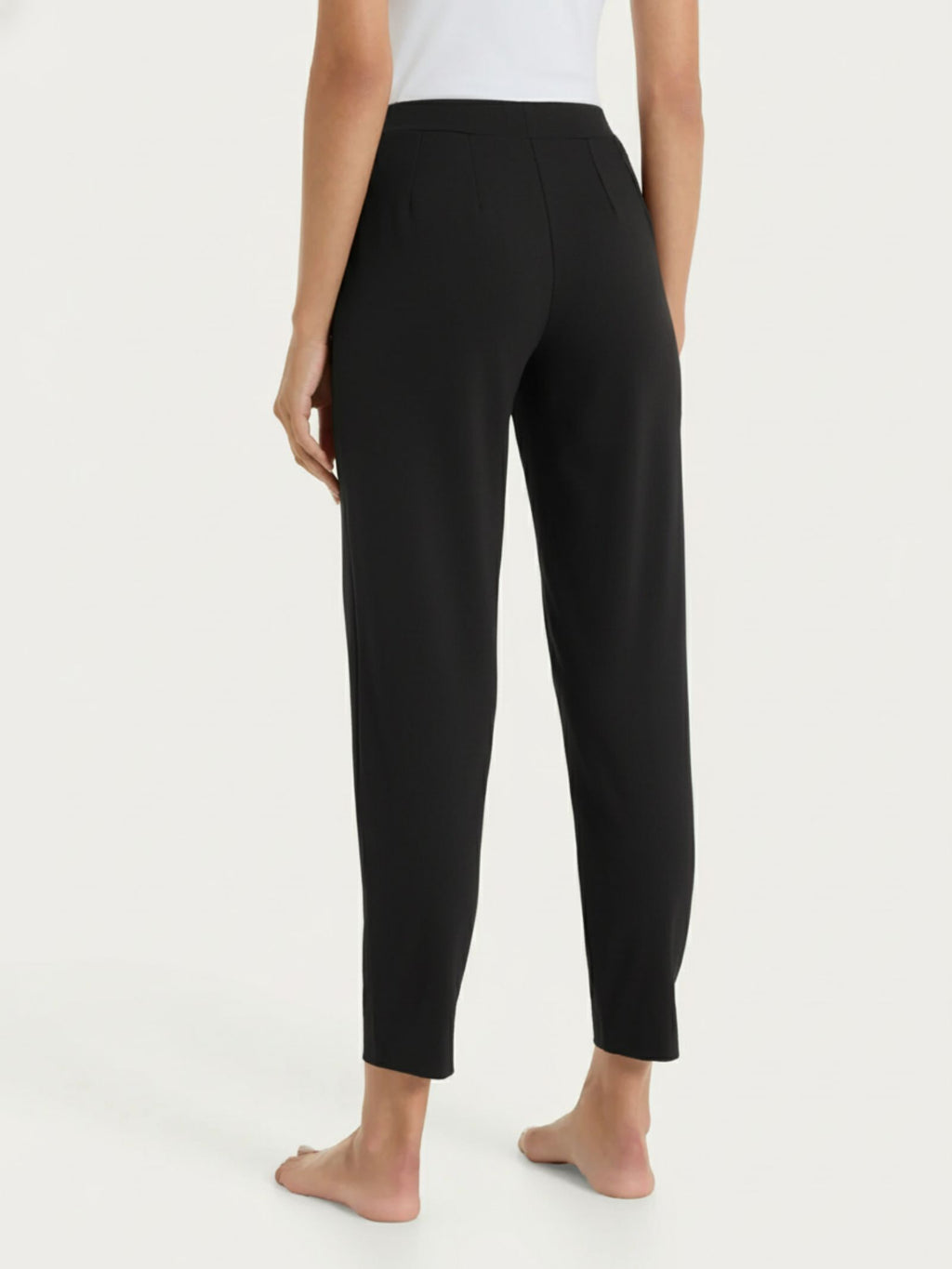 Pantalone a carota da donna con vestibilità tapered, la gamba leggermente ampia si stringe verso la caviglia con lunghezza alla caviglia cropped.