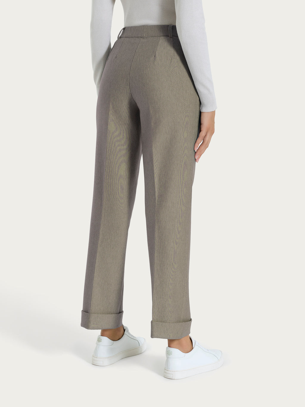 Pantalone ampio con tasche e risvolto in Compact - Glace' Mel.