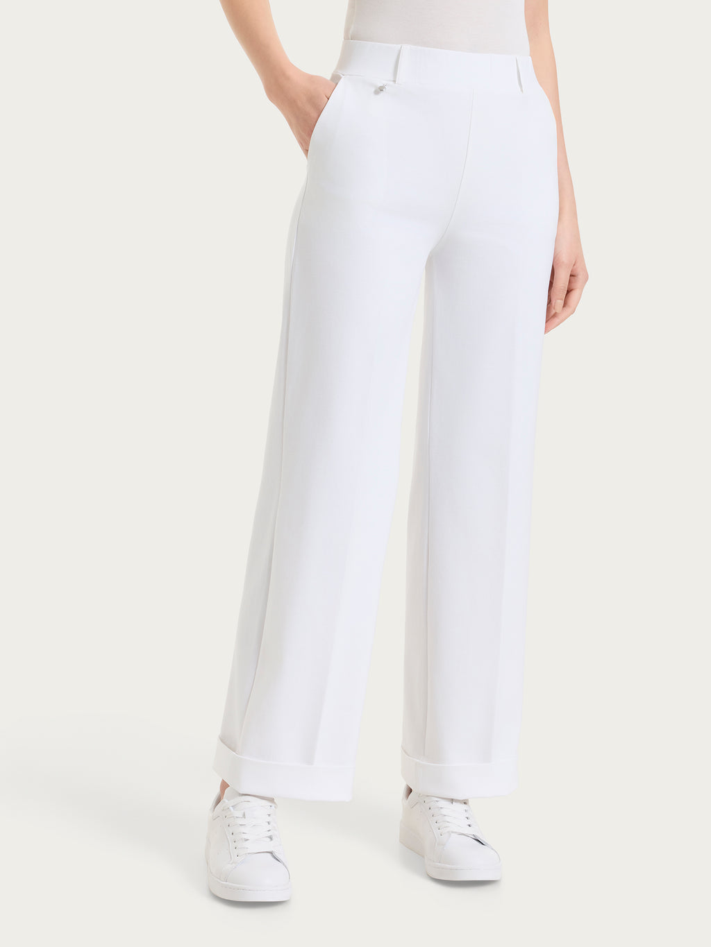 Pantalone da donna con tasche a gamba larga e lunghezza alla caviglia con risvolto.