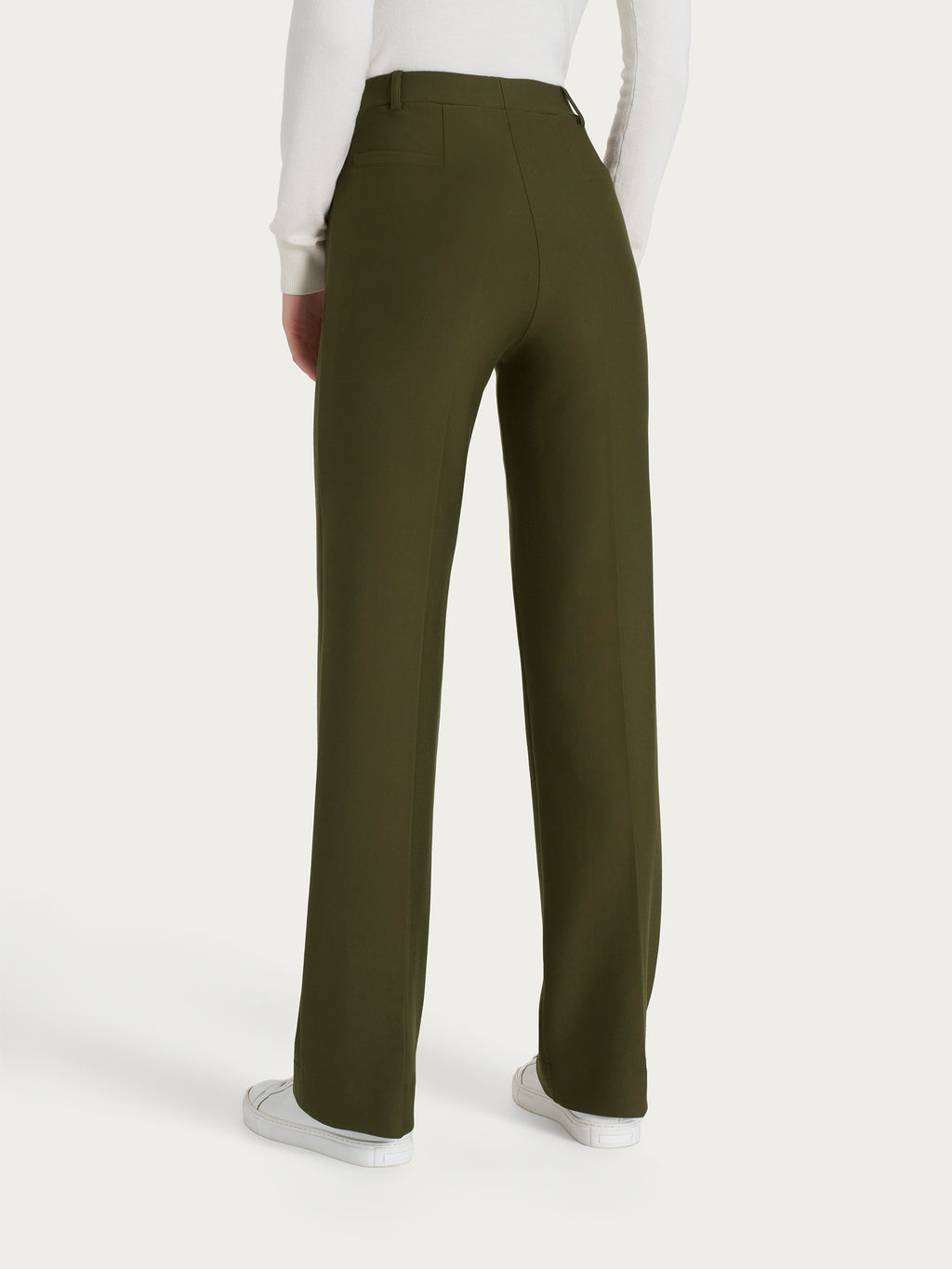 Realizzato nell'esclusivo tessuto Compact, un punto Milano incredibilmente compatto ed elasticizzato, tanto da garantire sempre una vestibilità perfetta. Un pantalone ingualcibile e resistente, praticamente indistruttibile e ovviamente lavabile in lavatrice per la massima praticità.