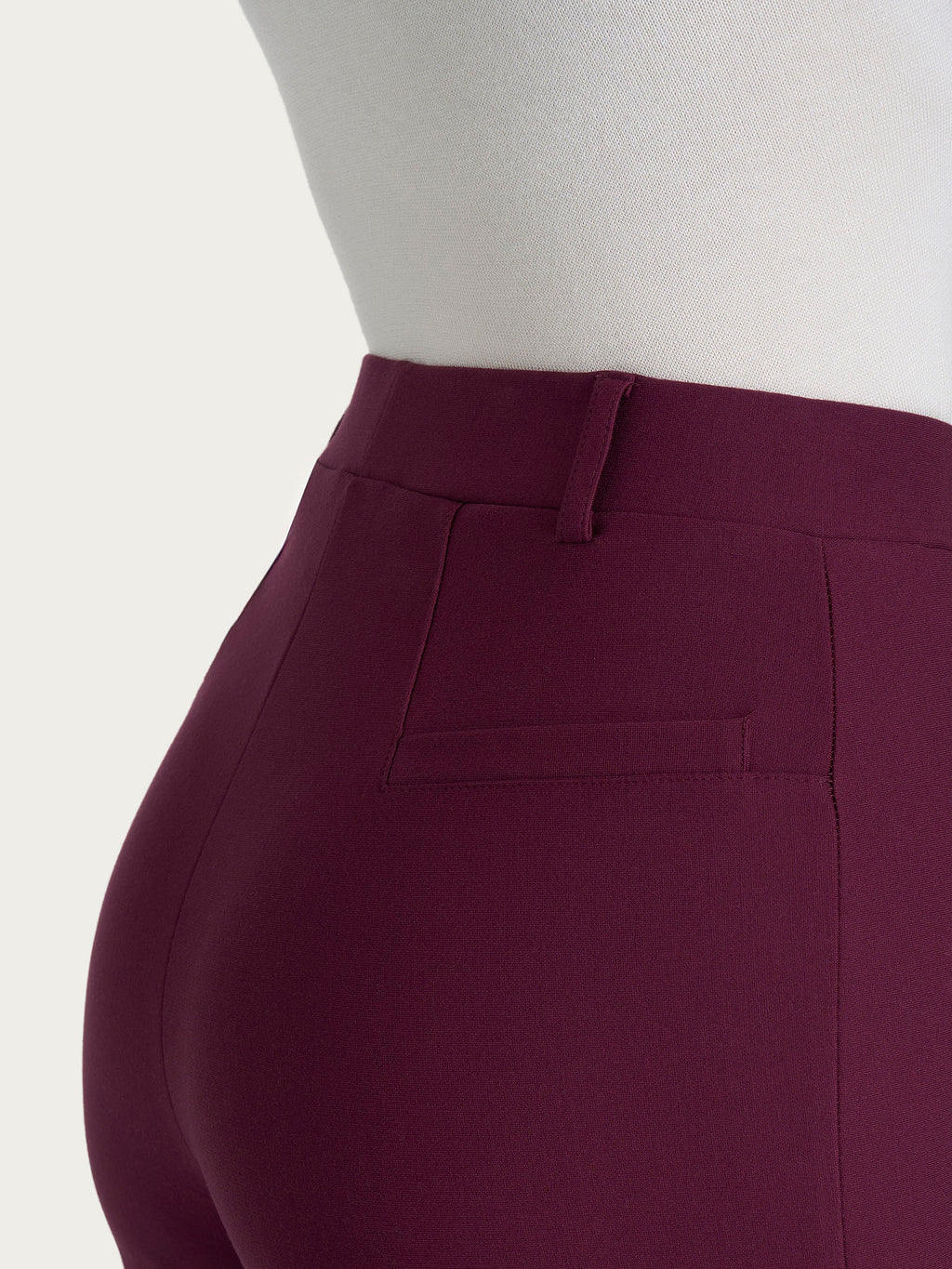 Questo modello senza tasche è costruito con vita elasticizzata ma con i passanti per la cintura per permetterti di aggiungere quel tocco di stile in più, comodo come indossare un leggings pur mantenendo l'eleganza di un pantalone. Le tasche posteriori sono finte per offrire la giusta estetica senza inficiarne la vestibilità.