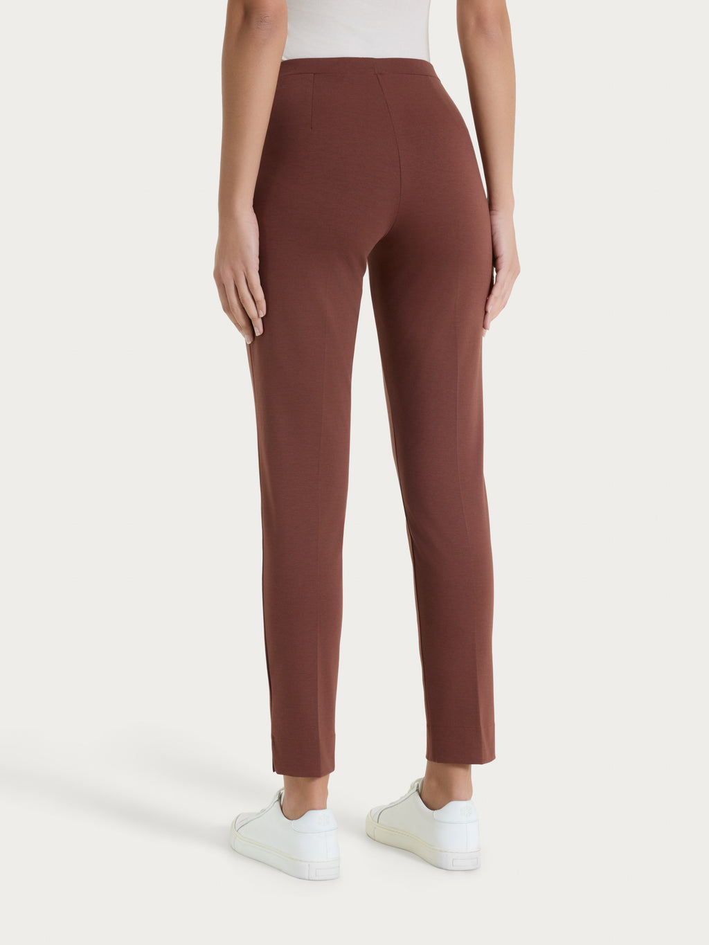 Questo modello tinta unita è costruito con vita elasticizzata, senza tasche e pratici spacchetti laterali alla caviglia, comodo come indossare un leggings pur mantenendo l'eleganza di un pantalone.
