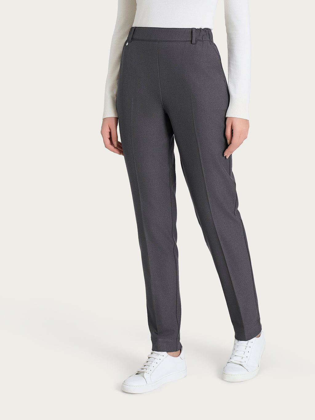 La vita elasticizzata si adatta con naturalezza alla figura, offrendo una vestibilità comoda e definita, senza costringere. Le tasche alla francese aggiungono eleganza e praticità, rendendo il capo versatile e curato nei dettagli. Il fondo del pantalone può essere facilmente risvoltato, per un look più disinvolto e personalizzato, perfetto per adattarsi a diverse occasioni o gusti di stile.