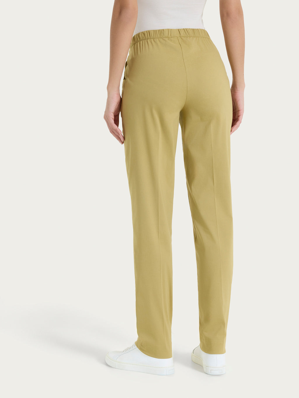 Questo modello è costruito con vita elasticizzata, pratica coulisse tono su tono e con pratiche tasche laterali alla francese.