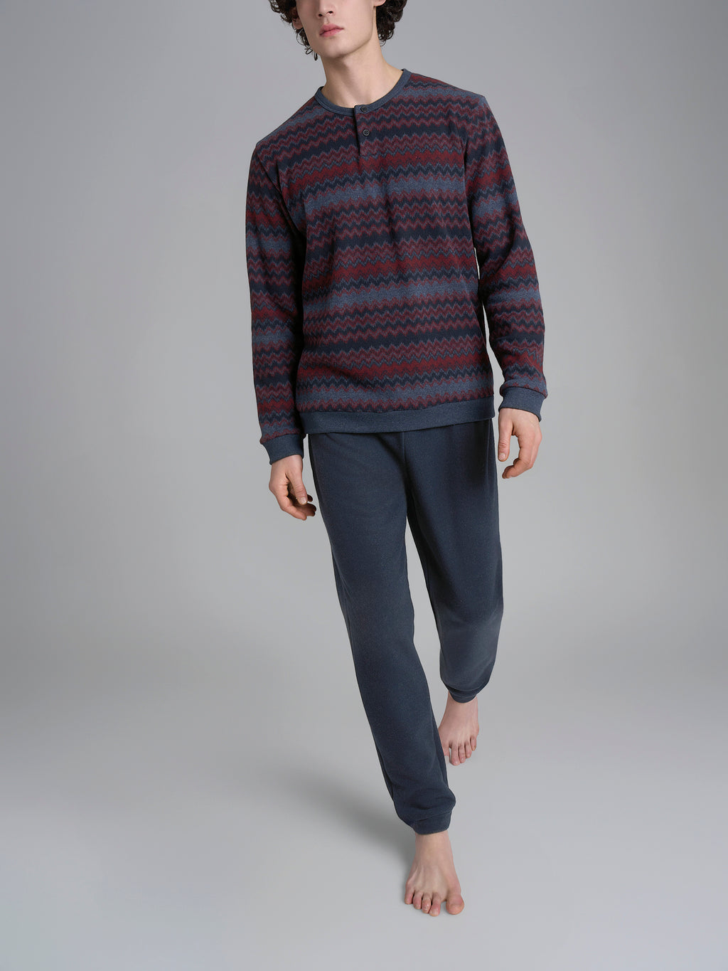 Pigiama a serafino in caldo cotton eco pile con maniche lunghe.