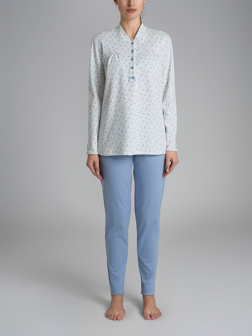Realizzato in caldo cotone interlock, questo pigiama garantisce una piacevole sensazione di morbidezza e calore.