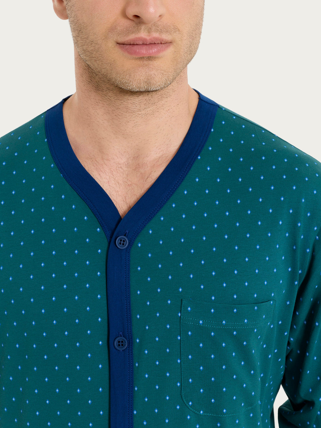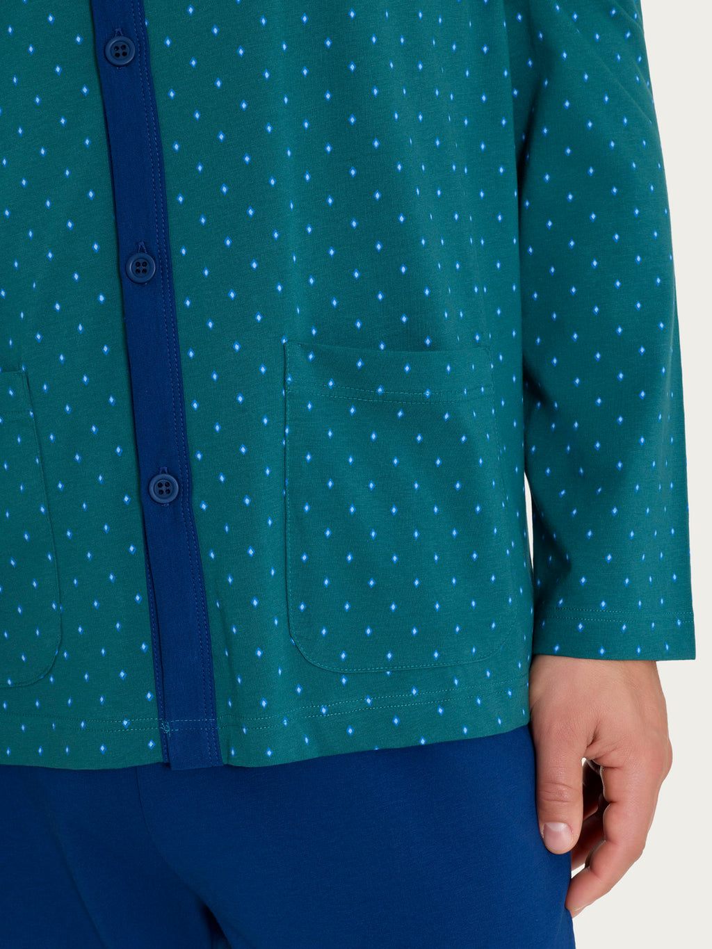 Pigiama aperto con micro rombi in Jersey di Cotone 44-56 - Fant. Bayberry