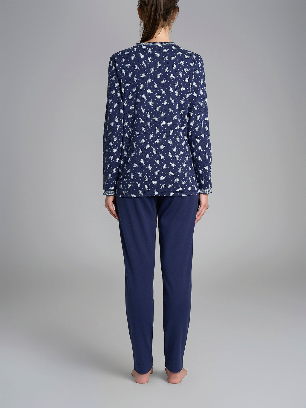 Lasciati avvolgere dalla morbidezza inconfondibile del pigiama da donna.La casacca a manica lunga con collo a serafino a quattro bottoni è caratterizzata da un taschino applicato sul petto e dalla ...