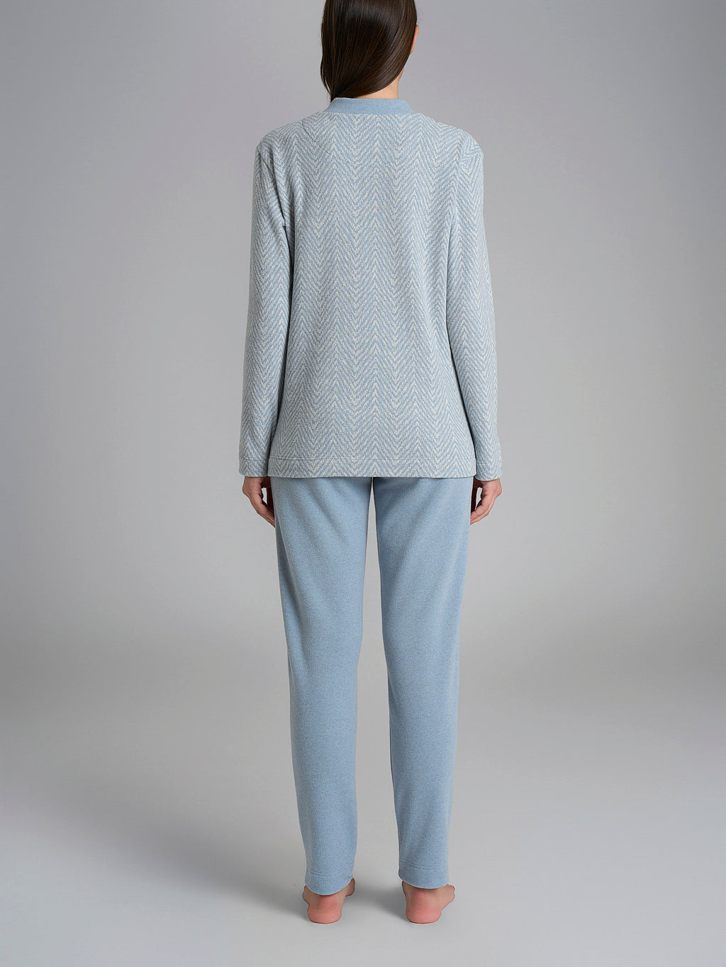 Pigiama con scollo a V e fantasia in Cotton Eco Pile - Fant.Nebbia