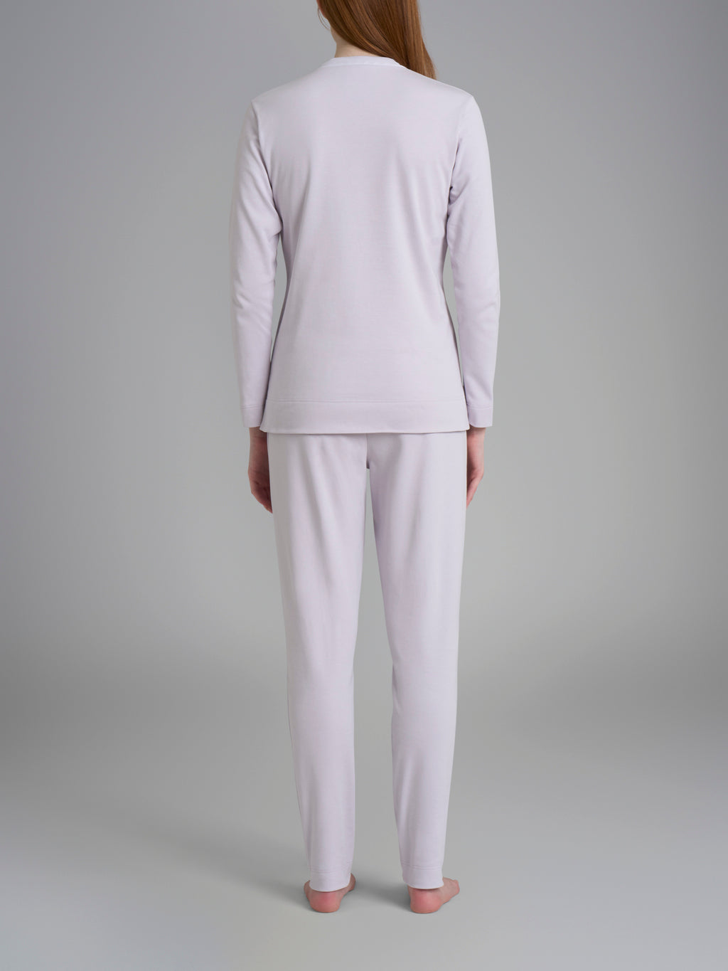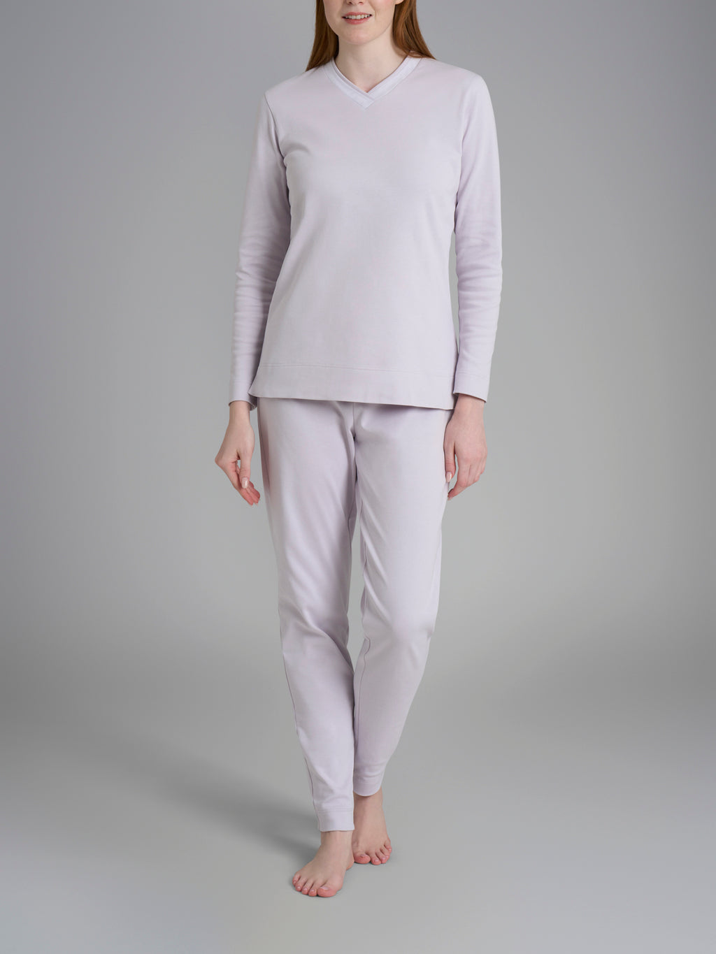 Pigiama con scollo a V in tinta unita in Interlock di cotone - Lavender Blue