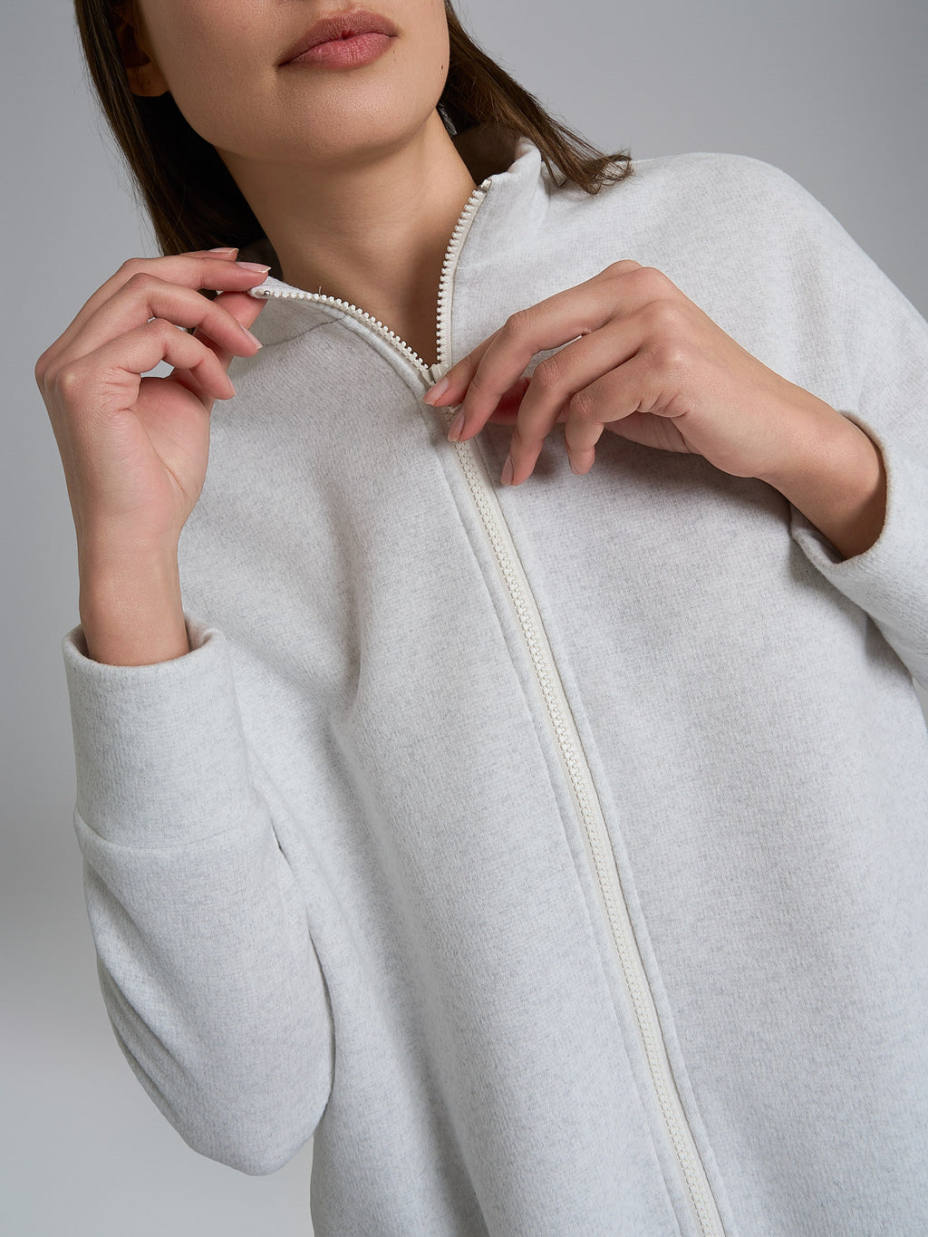 Pigiama con zip in tinta unita in Cotton Eco Pile - Ghiaia Mel.