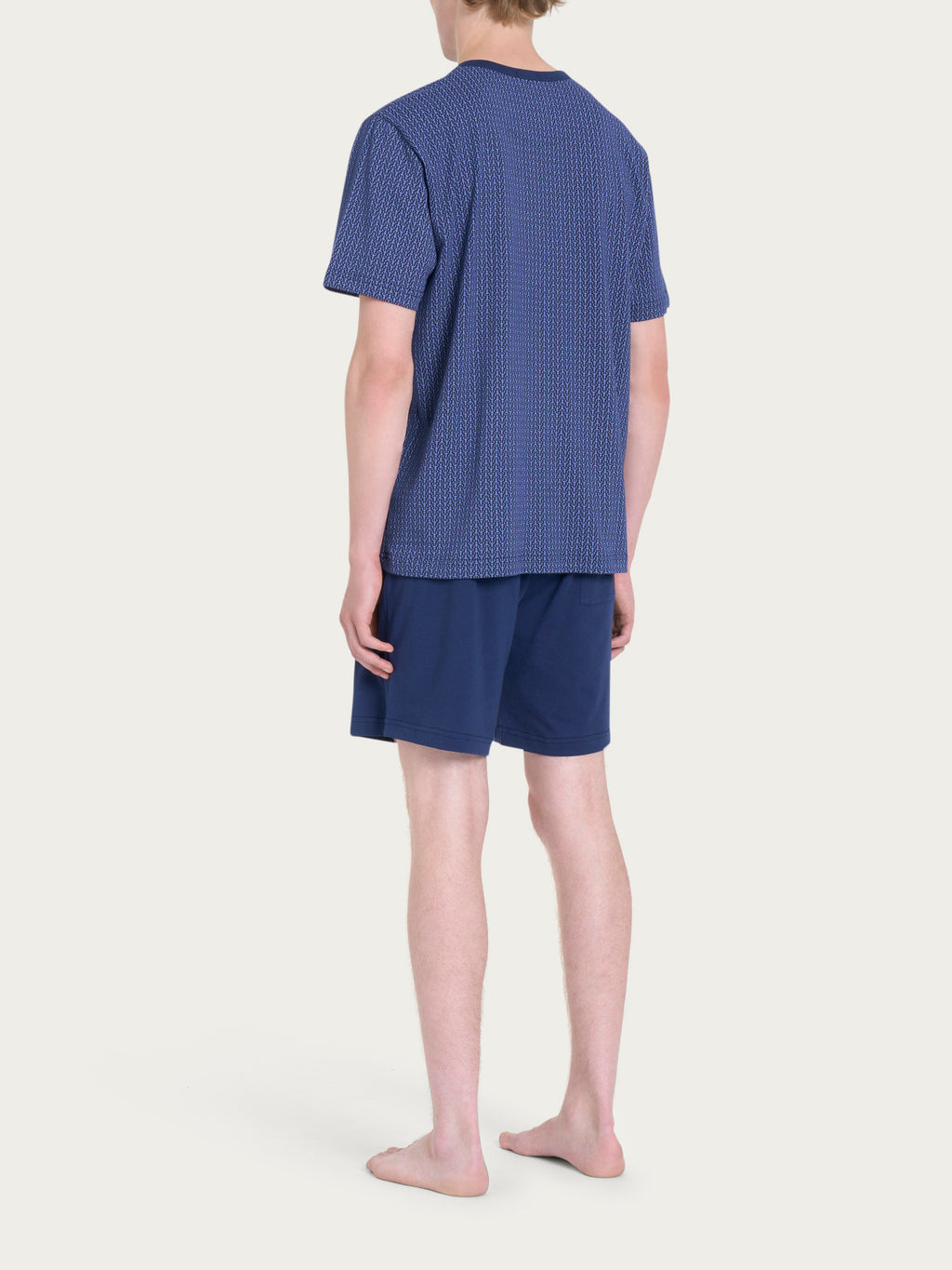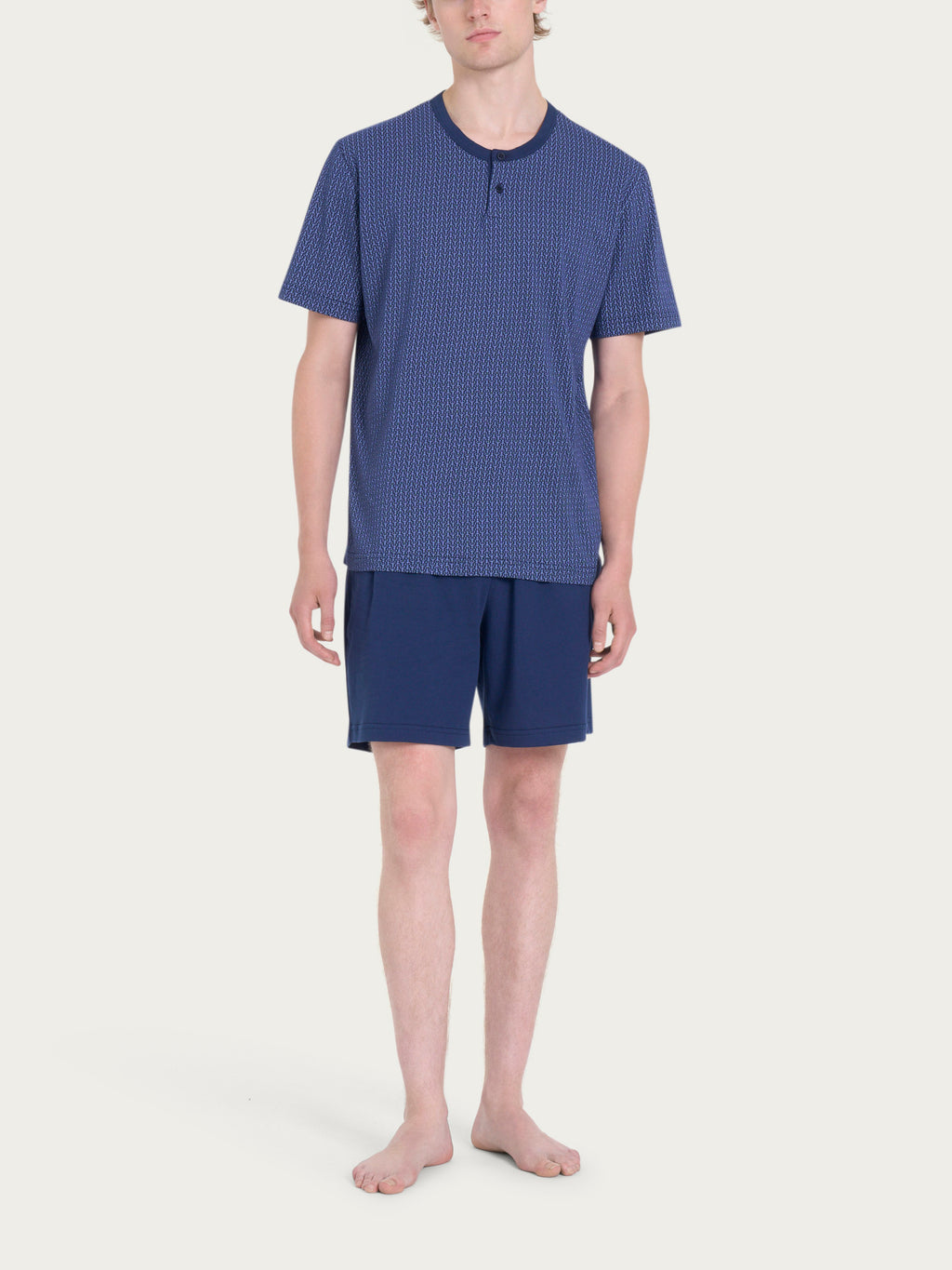 Pigiama corto con collo a serafino in fresco jersey di cotone con maniche corte.