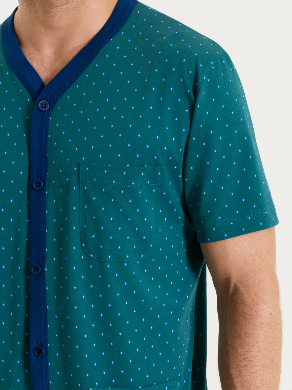Pigiama corto e aperto con micro rombi in Jersey di Cotone 58-60 - Fant. Bayberry