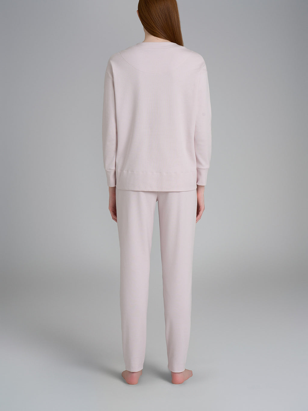Proposto in una raffinata palette di tonalità pastello, questo pigiama unisce morbidezza e cura del dettaglio in un equilibrio perfetto.