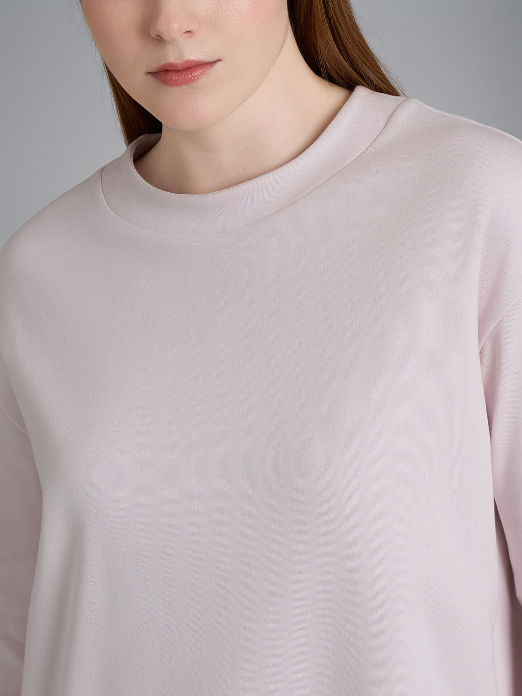 La casacca a tinta unita si distingue per il suo raffinato girocollo, essenziale e versatile, capace di valorizzare con discrezione anche i look più semplici.