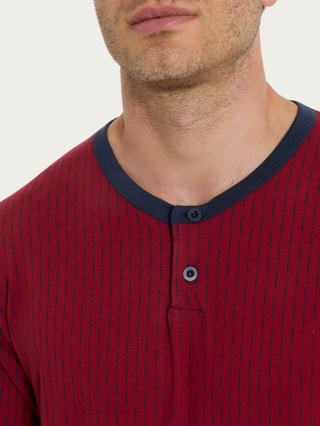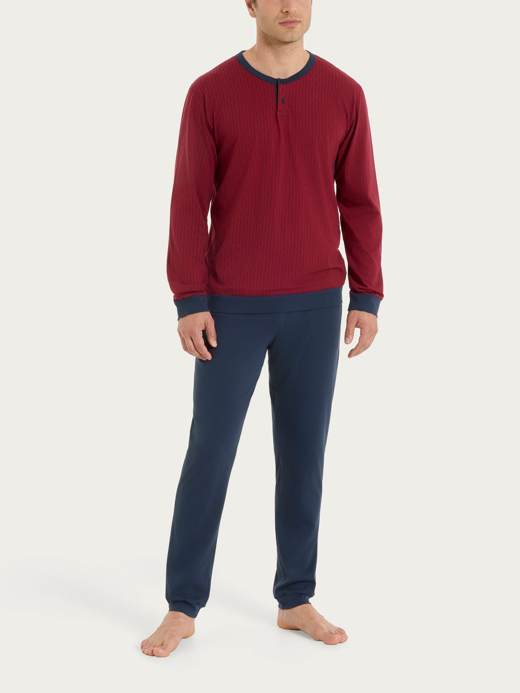 Pigiama lungo da uomo con collo a serafino e manica lunga, perfetto per affrontare la mezza stagione con un capo pratico.