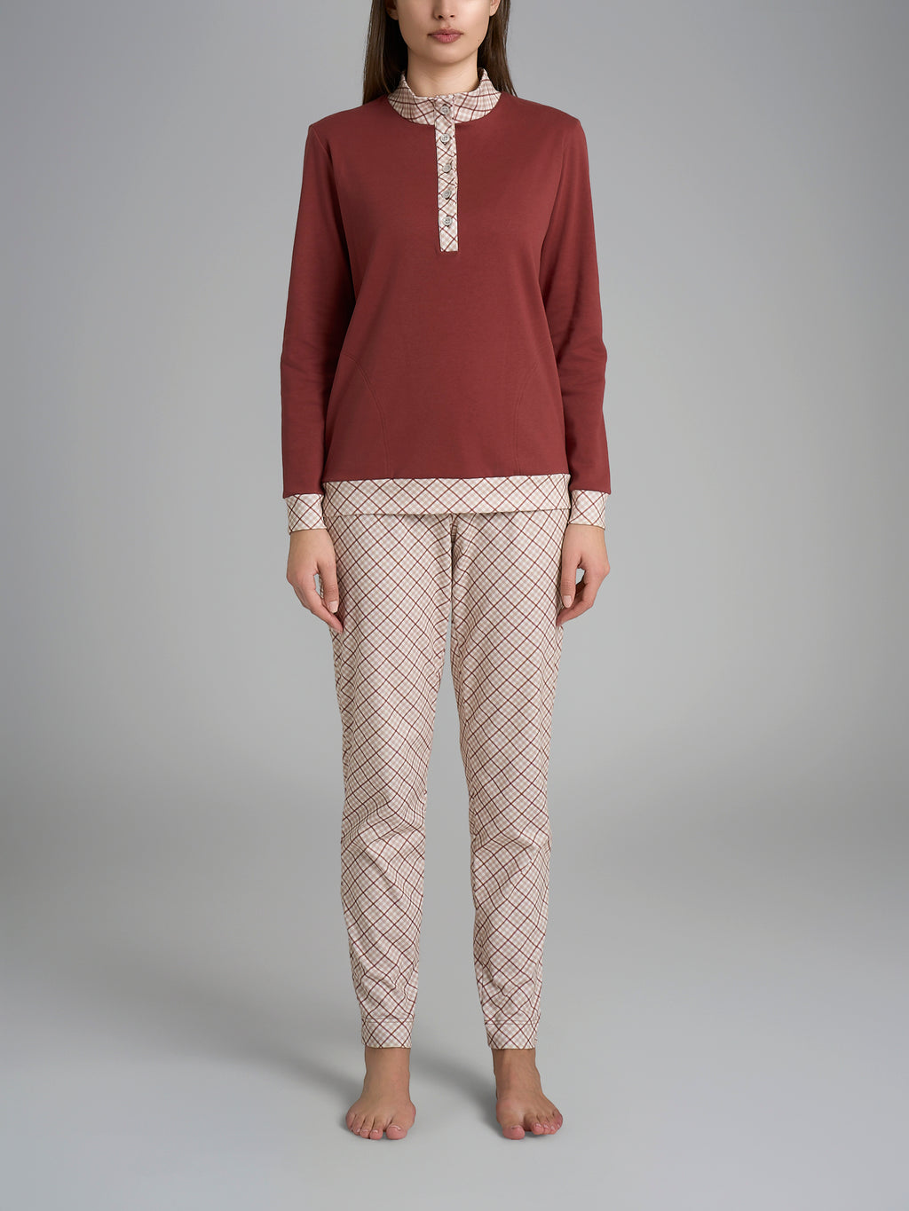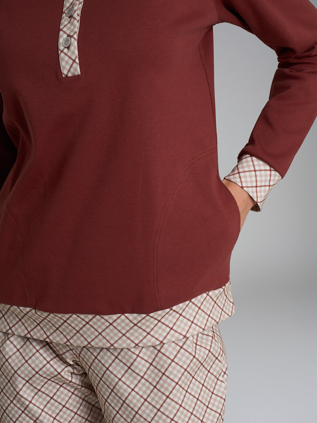 Pigiama lupetto con fantasia tartan in Interlock di cotone - Fant. Henna Small Tartan