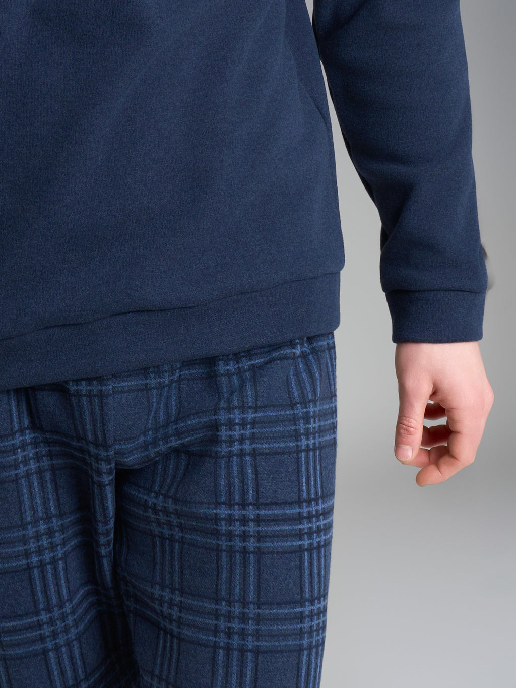 Pigiama serafino con fantasia a macro quadrati in Cotton Eco Pile - Fant.Indigo