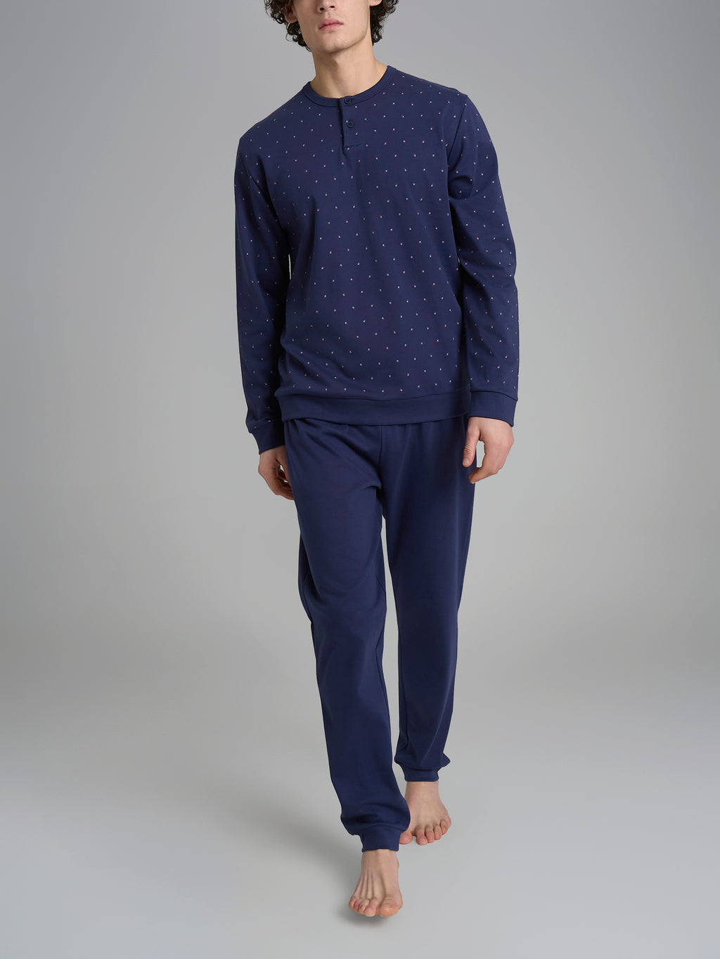 Pigiama a serafino in morbido interlock di caldo cotone con maniche lunghe.
