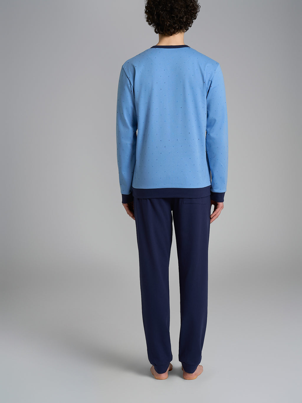 Pigiama a serafino in morbido interlock di caldo cotone con maniche lunghe.