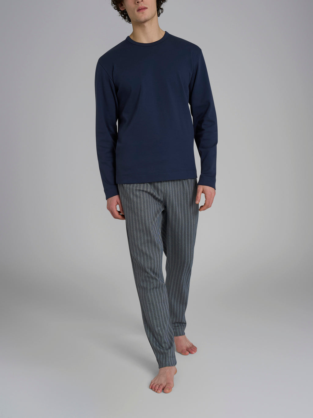 Pigiama girocollo in morbido interlock di caldo cotone con maniche lunghe.