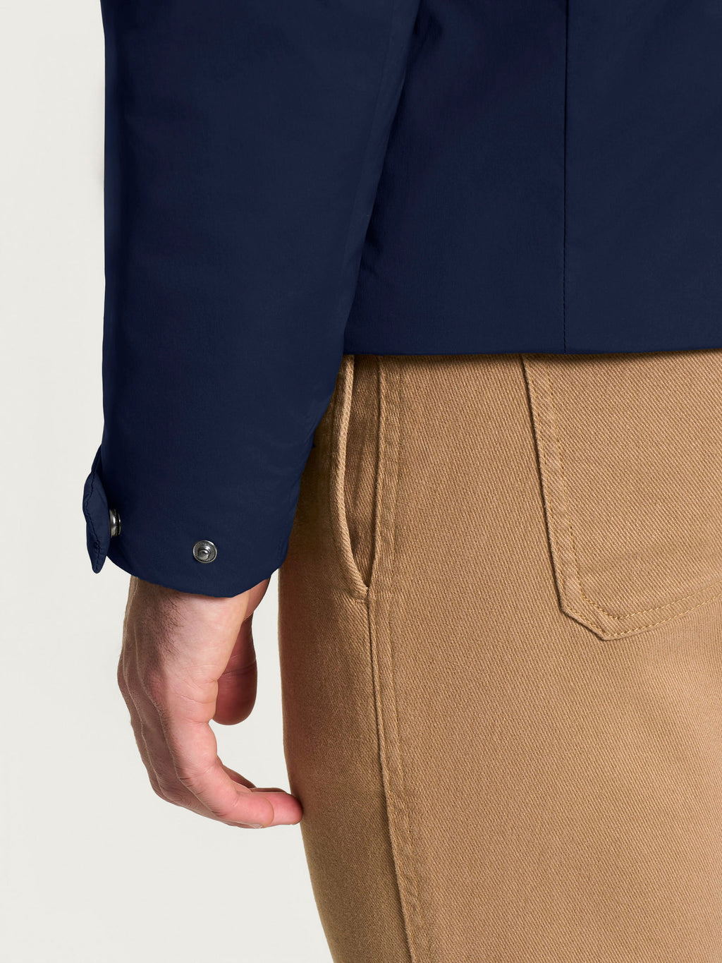 Modello a maniche lunghe dal taglio moderno, definito da un elegante collo alla coreana e una zip con doppio cursore che assicura praticità e una vestibilità regolabile. Completano il capo le funzionali tasche laterali, perfette per unire stile e comodità nei contesti quotidiani.