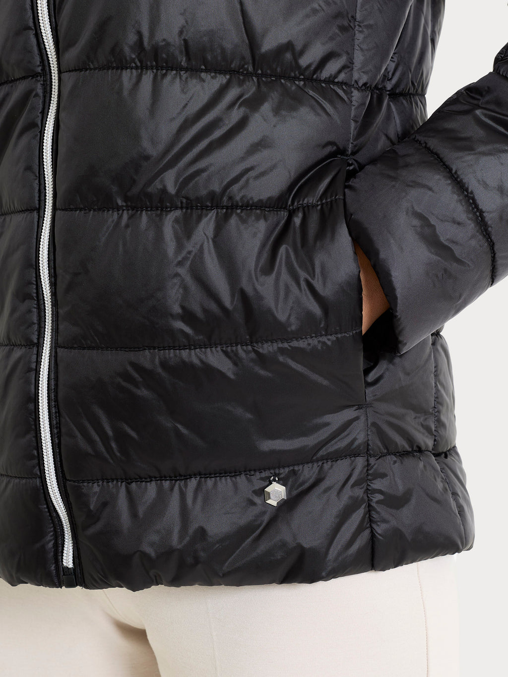 Moderno e luminoso, questo piumino con effetto shiny si distingue per la sua superficie brillante che cattura la luce con eleganza. Grazie a questo finish lucido dona al capo un look contemporaneo e dinamico, perfetto per aggiungere personalità anche agli outfit più semplici.