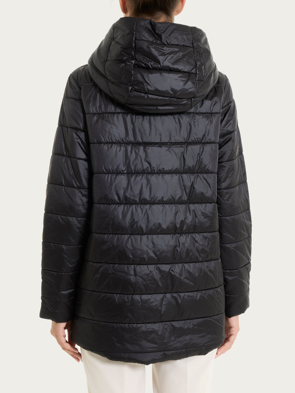 Piumerino shiny 150 grammi con cappuccio imbottito in lana - Nero
