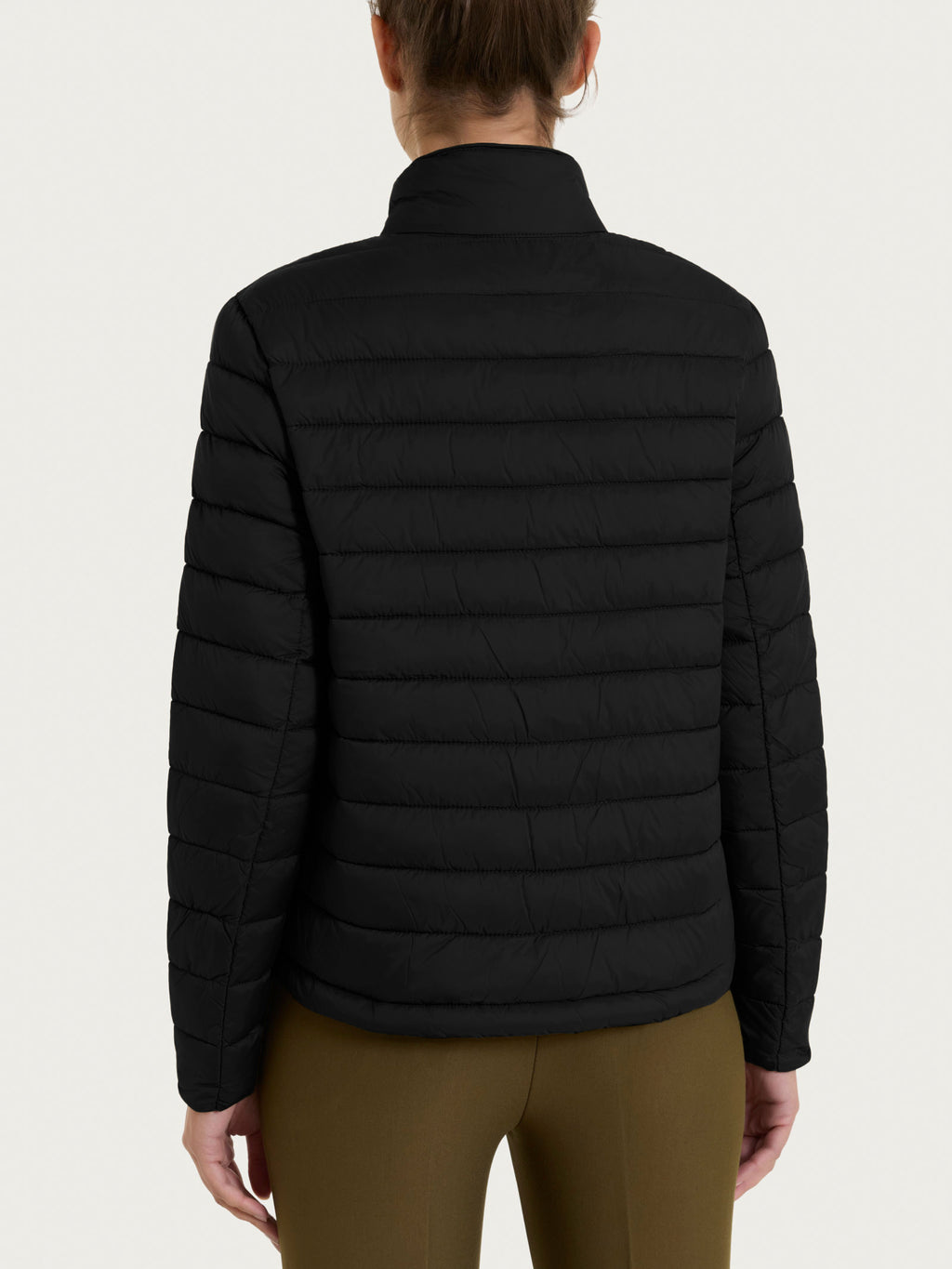 Piumino da donna con chiusura frontale con zip, collo alla coreana e pratiche tasche.