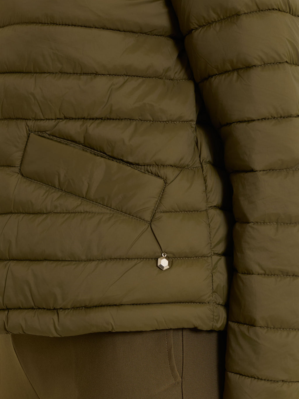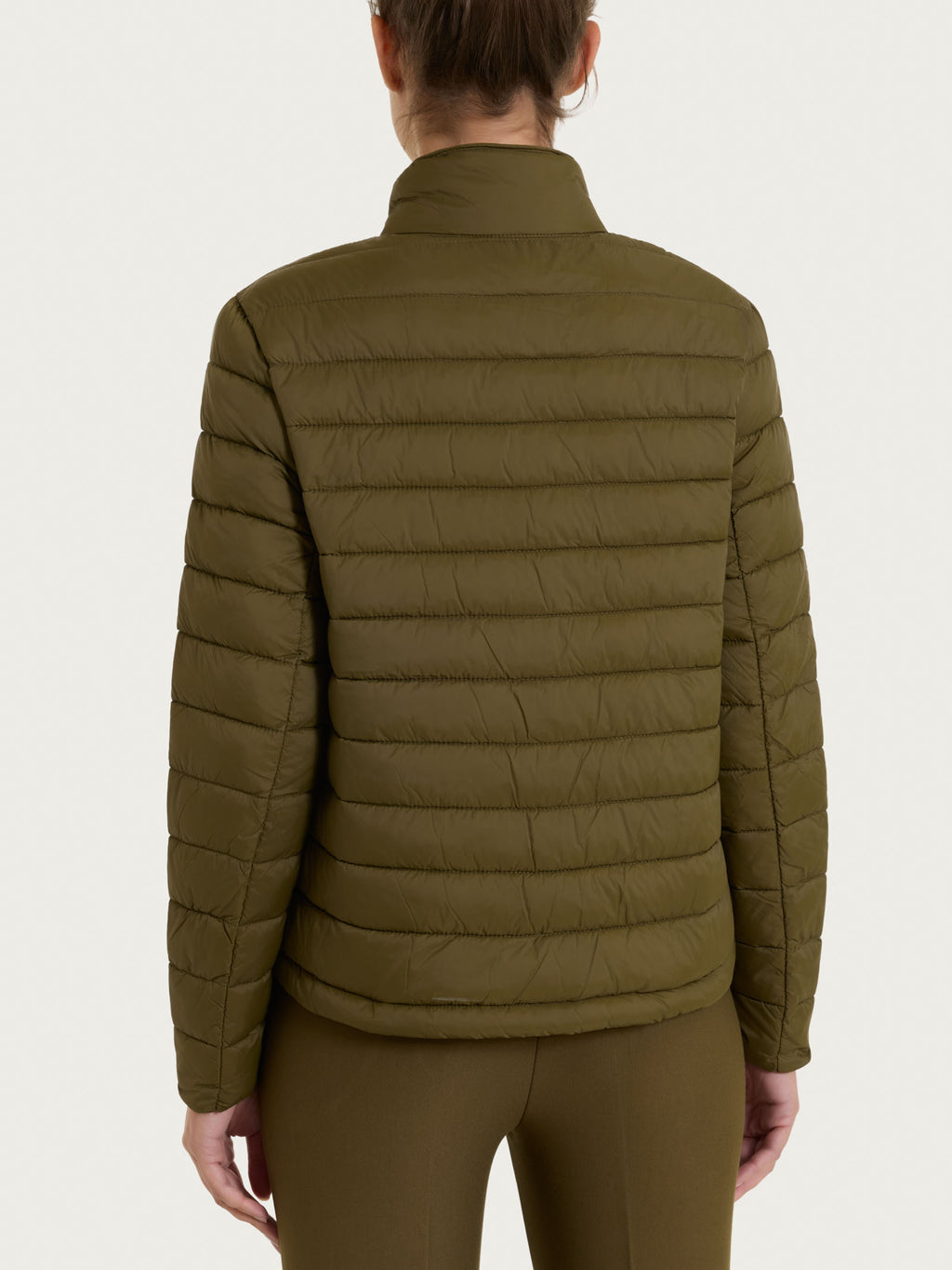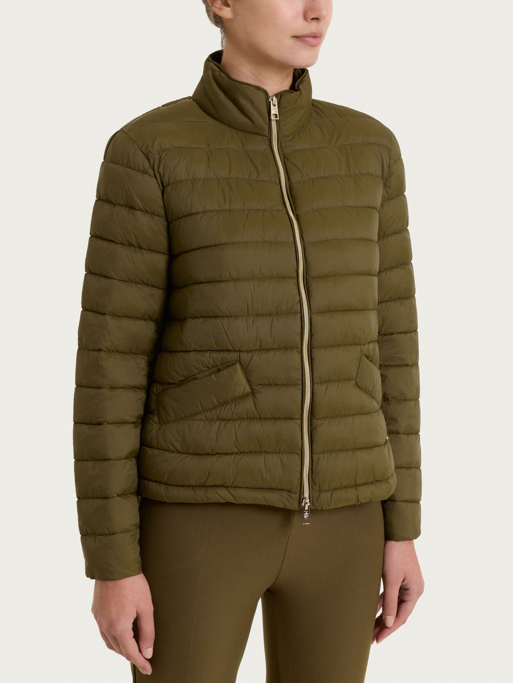 Piumino da donna con chiusura frontale con zip, collo alla coreana e pratiche tasche.