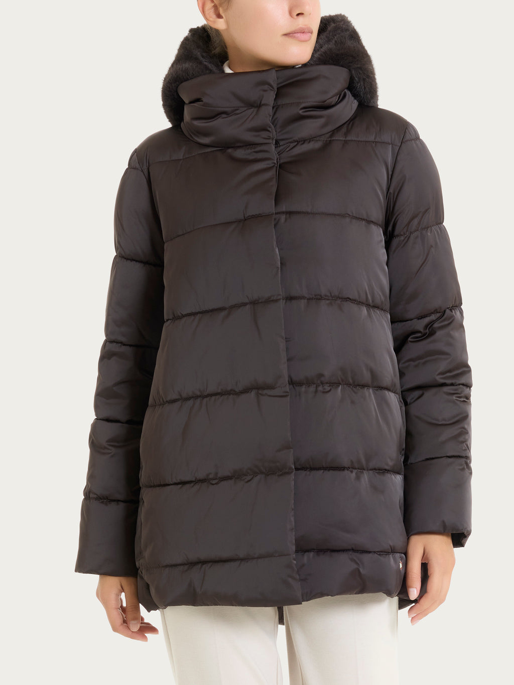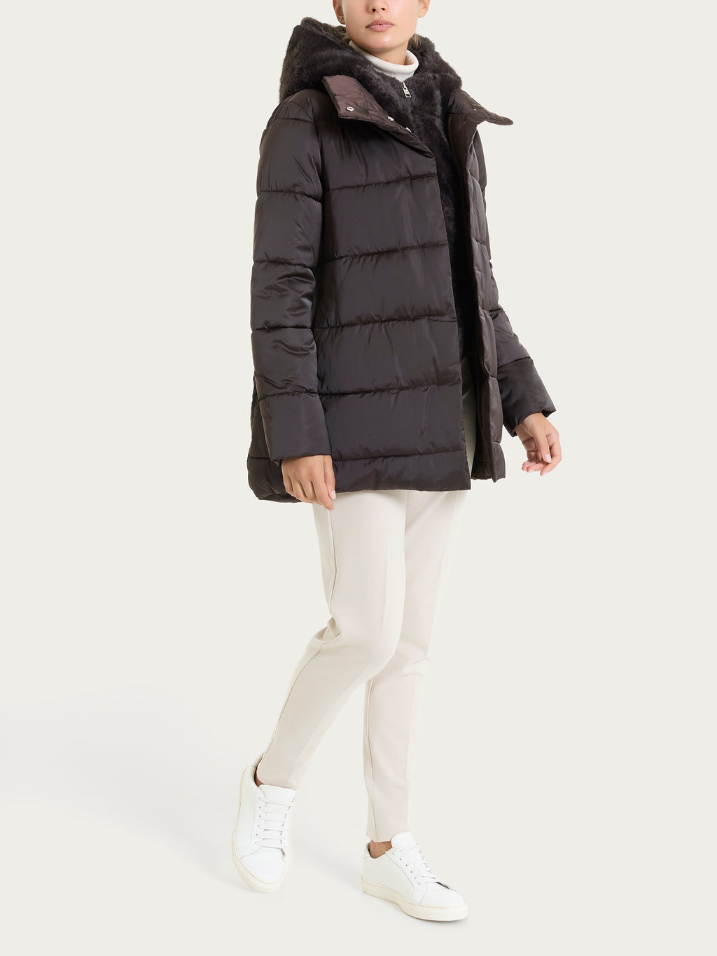 Realizzato in down jacket e vegan fur, nasce dalla fusione del piumino con la vegan fur, alternativa etica e glamour alla pelliccia tradizionale: soffice, calda e 100% cruelty-free, per vestire con stile e consapevolezza.