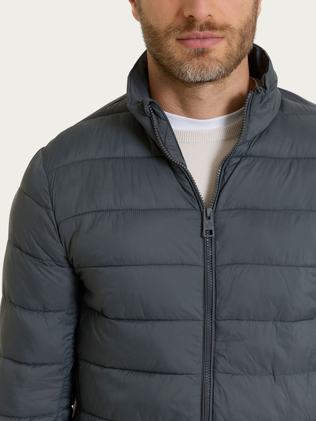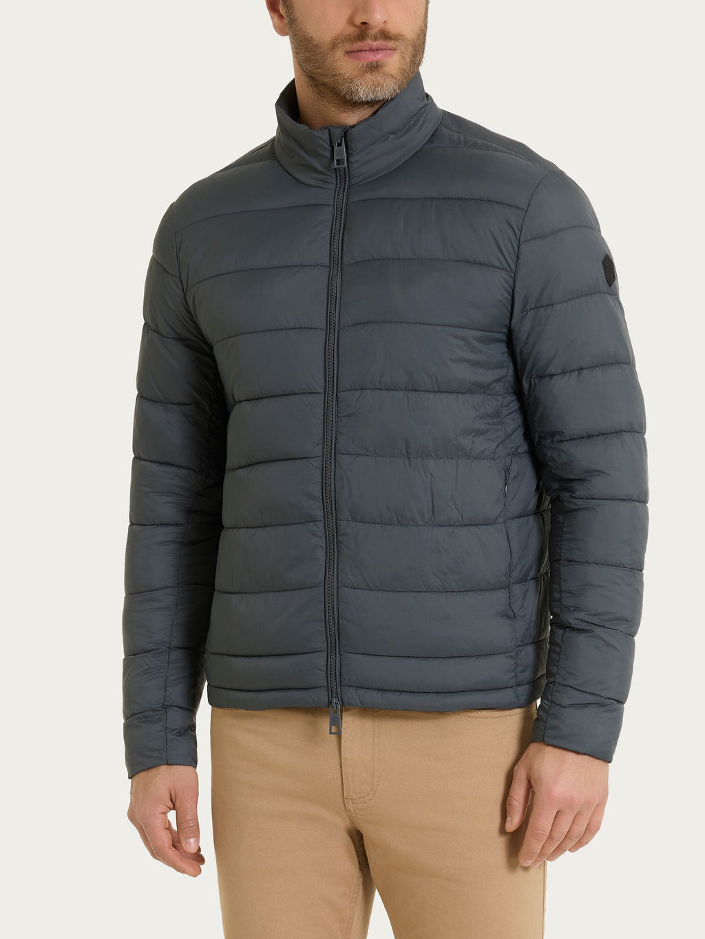 Piumino corto con collo alla coreana da uomo.
