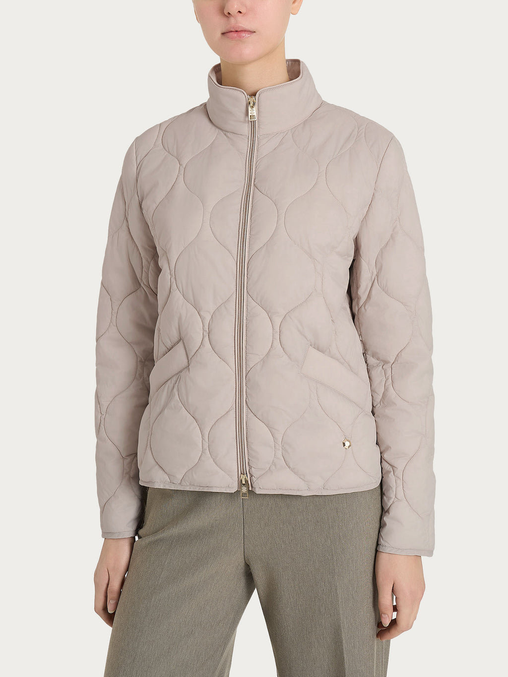 Piumino leggero ed autunnale con manica lunga e chiusura con zip e tasche laterali.