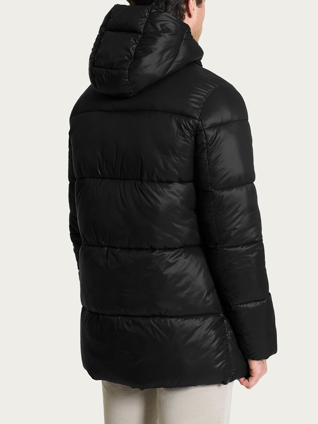 Piumino shiny con cappuccio in Vegan Down - Nero