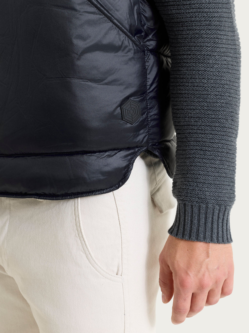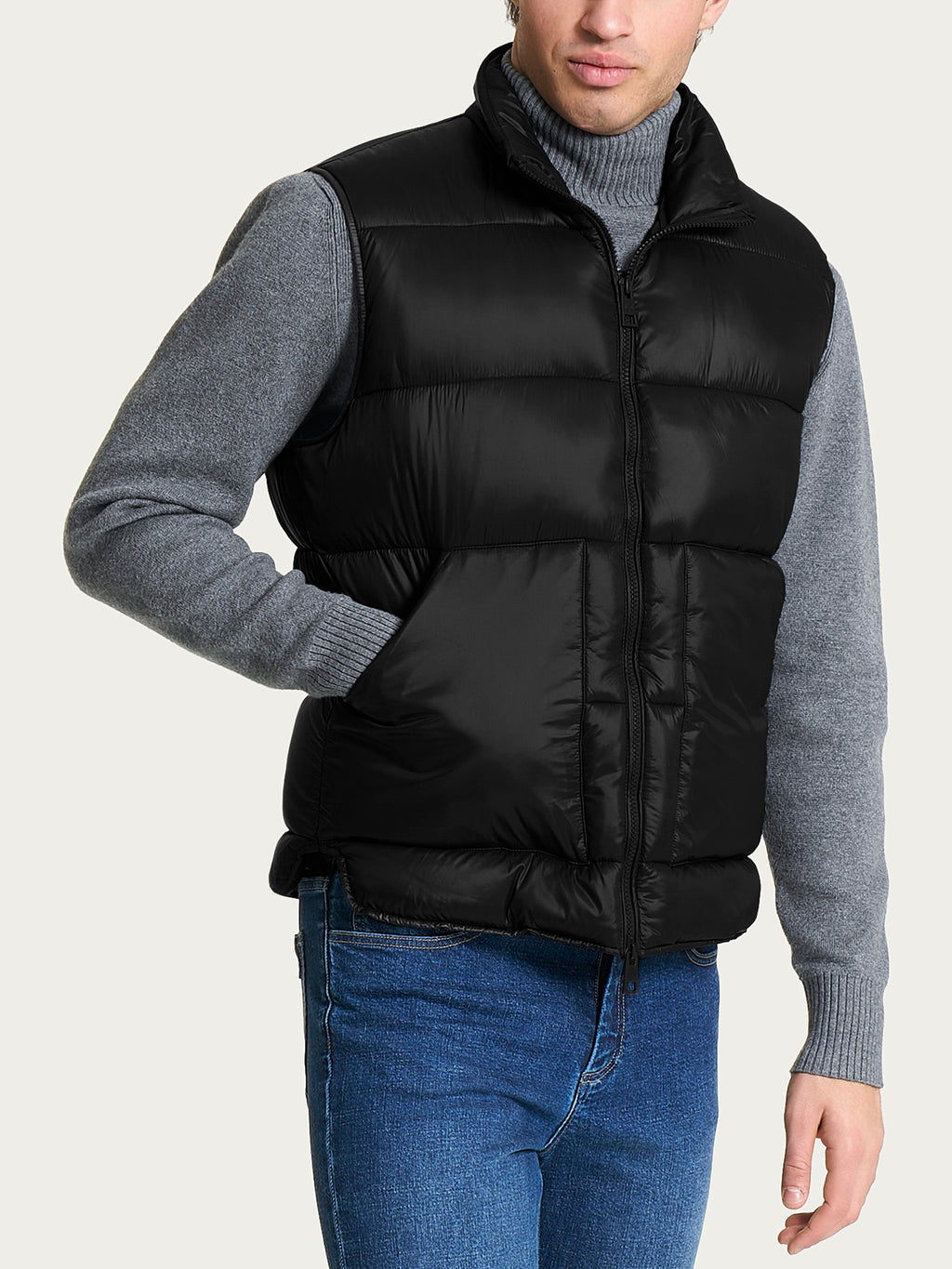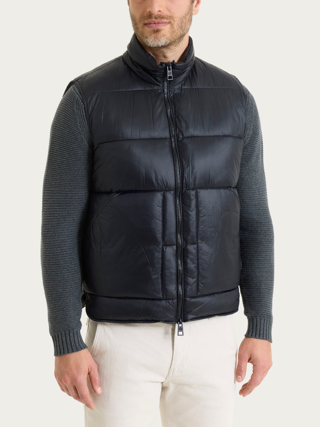 Piumino con collo alto da uomo con chiusura frontale con zip a doppio cursore e pratiche tasche laterali.