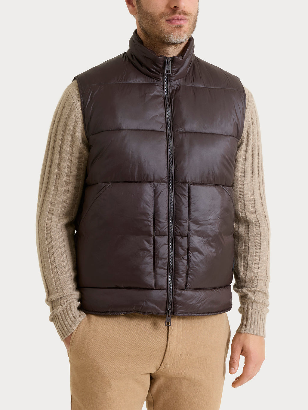 Piumino con collo alto da uomo con chiusura frontale con zip a doppio cursore e pratiche tasche laterali.