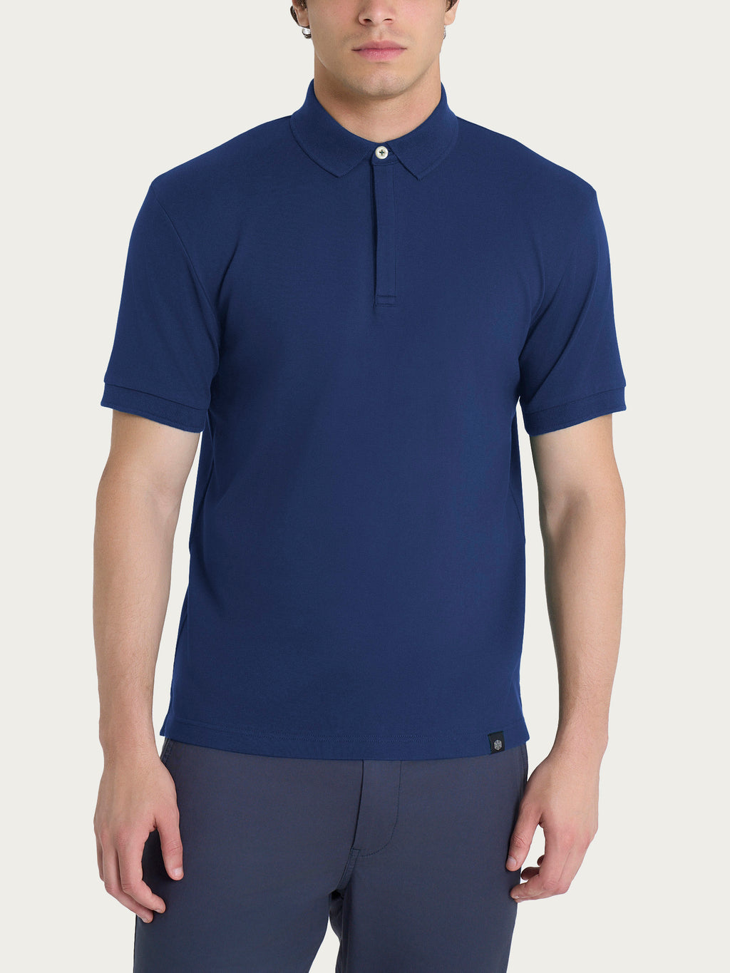 Polo in Eco Cotton Piquet Stretch - Blueberry