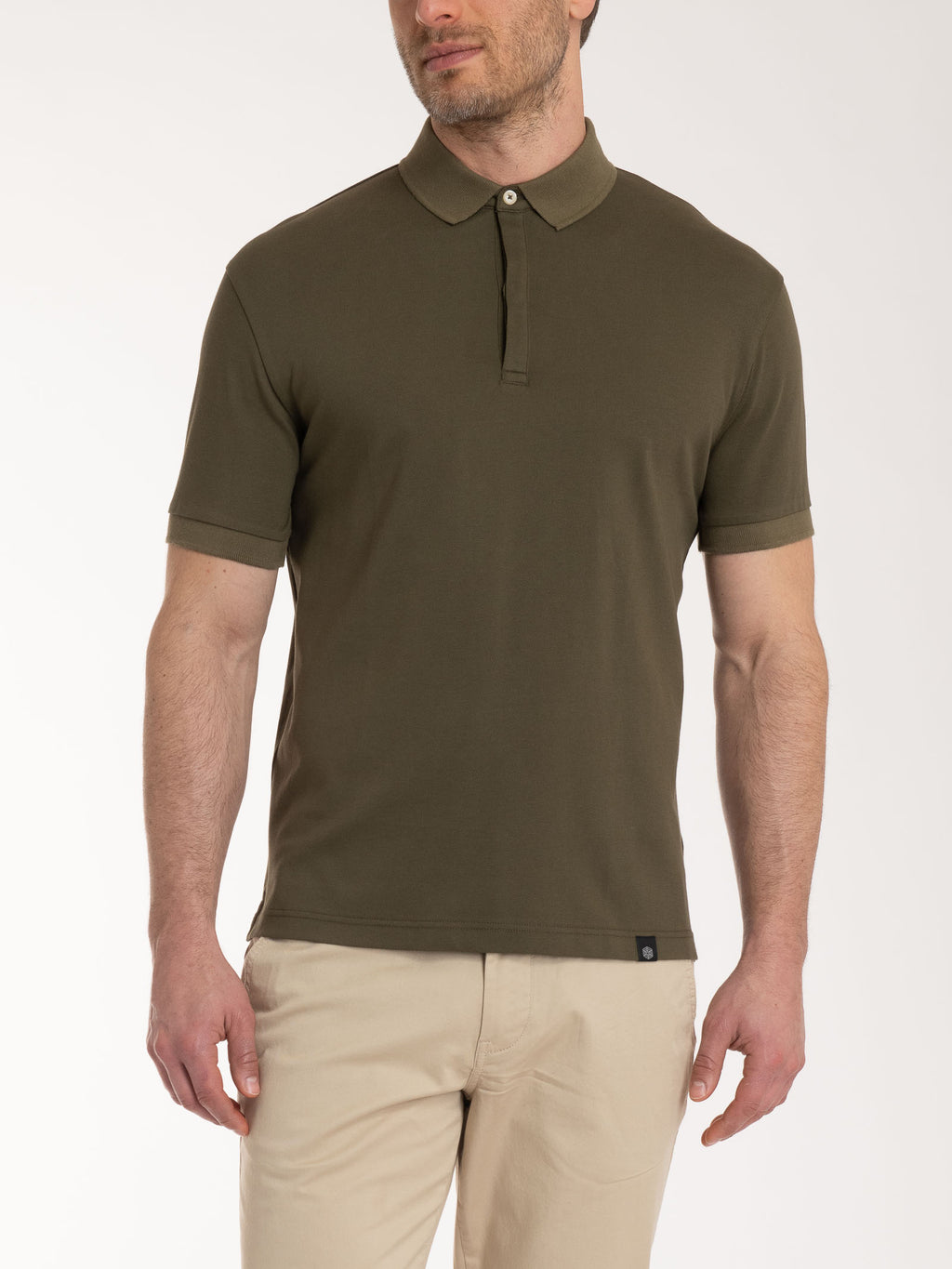 Polo in Eco Cotton Piquet Stretch - Dark Olive