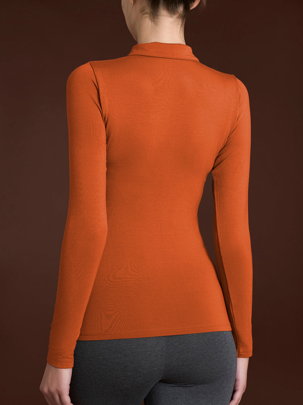 Polo a manica lunga da donna in ecoviscosa, una delicata viscosa elasticizzata calda e morbida.