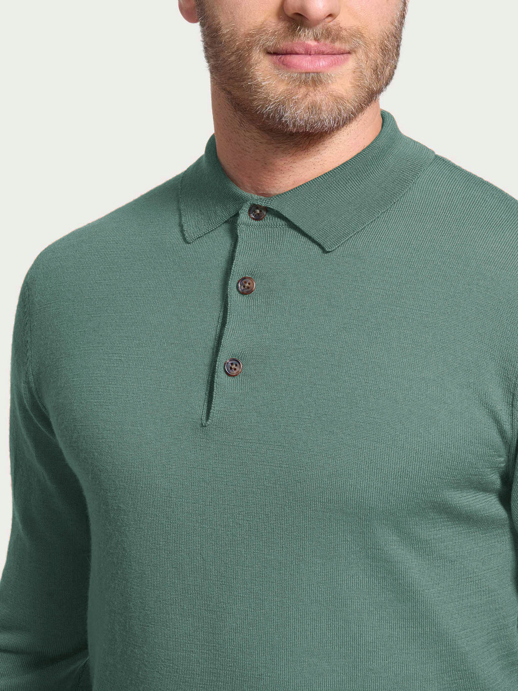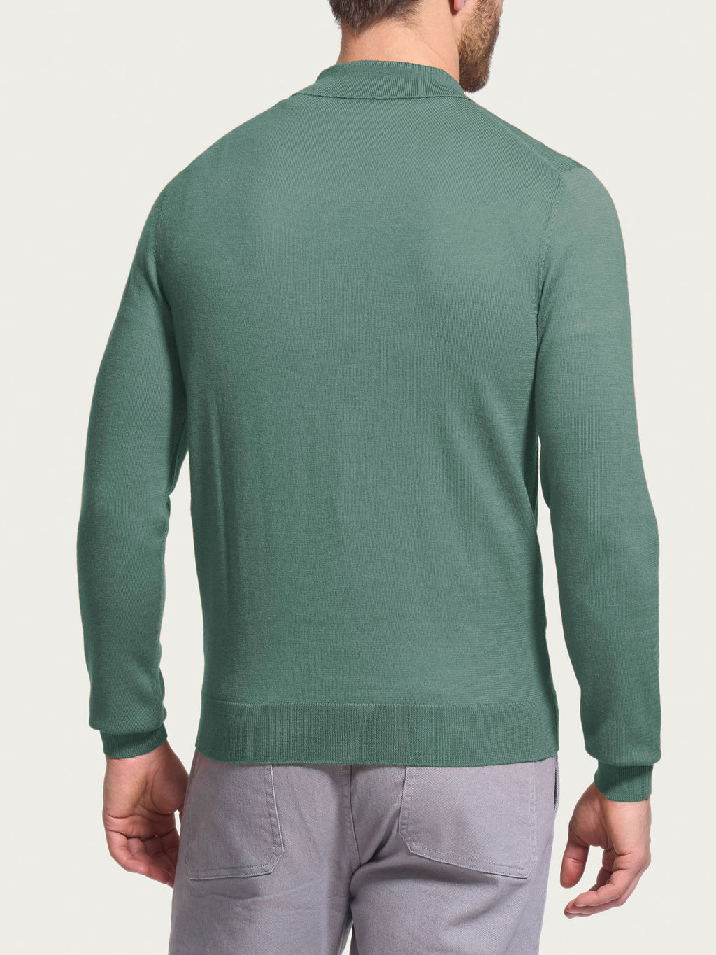 Polo da uomo a manica lunga in pura lana merino, tessuto in finezza 12, estremamente morbido e caldo.